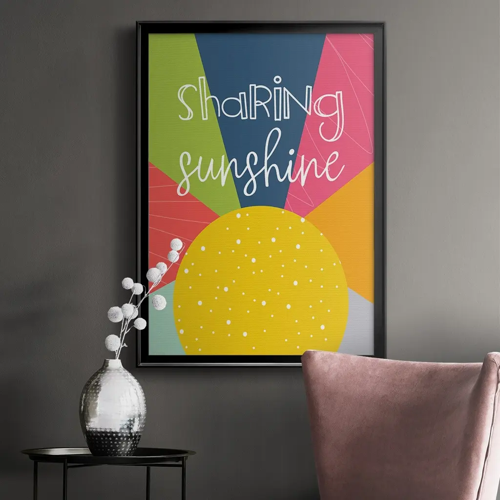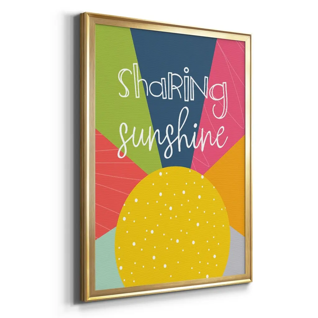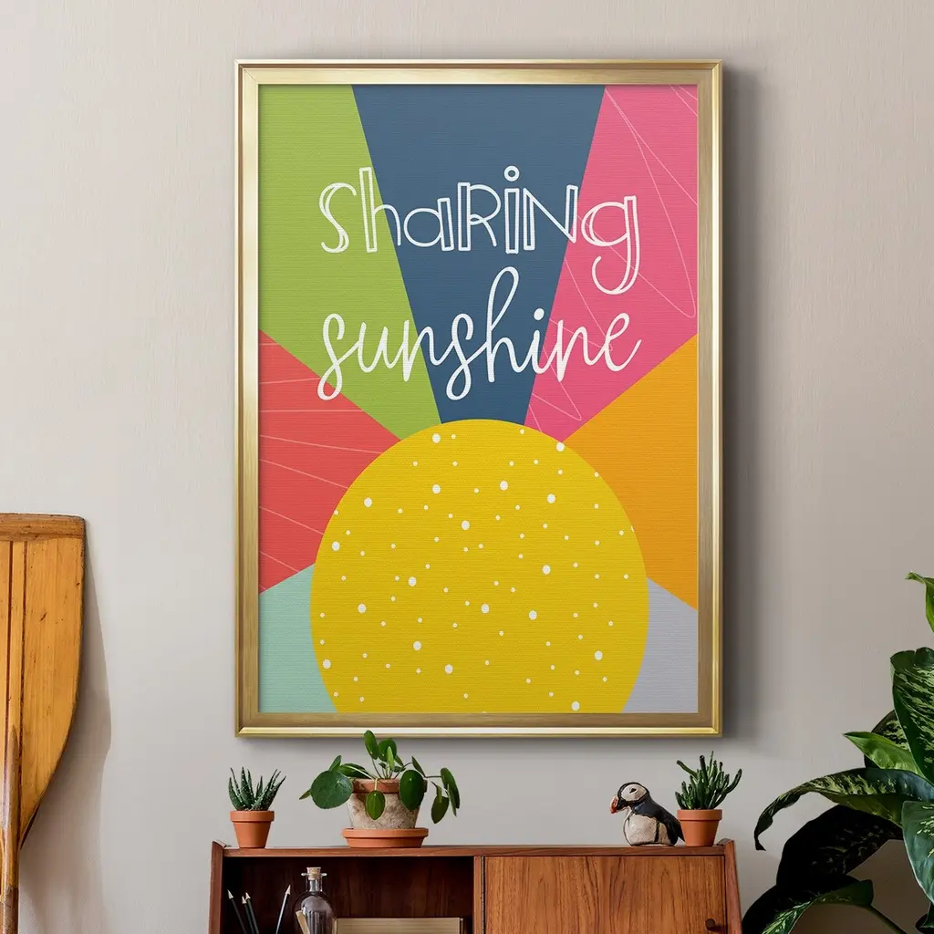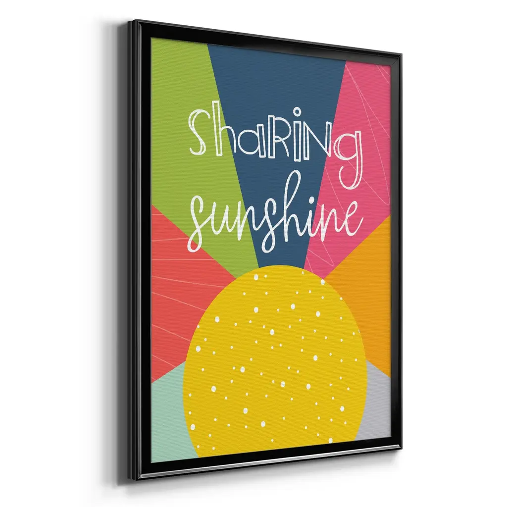 Sharing Sunshine Premium Framed Print - Ready to Hang A Premium Framed Print created to last. Framed in distressed wood and available in an array of sizes and colors Featuring a beveled a solid wood stretcher bar, each piece comes ready to hand 4 SIZES AVAILABLE 30.5''X42.5'' - Overall Size 26.5'X36.5'' - Overall Size 22.5''x30.5'' - Overall Size 18.5''x24.5'' - Overall Size Each piece is made to order. Each piece comes with hanging hardware. Made in the USA Ready to Hang