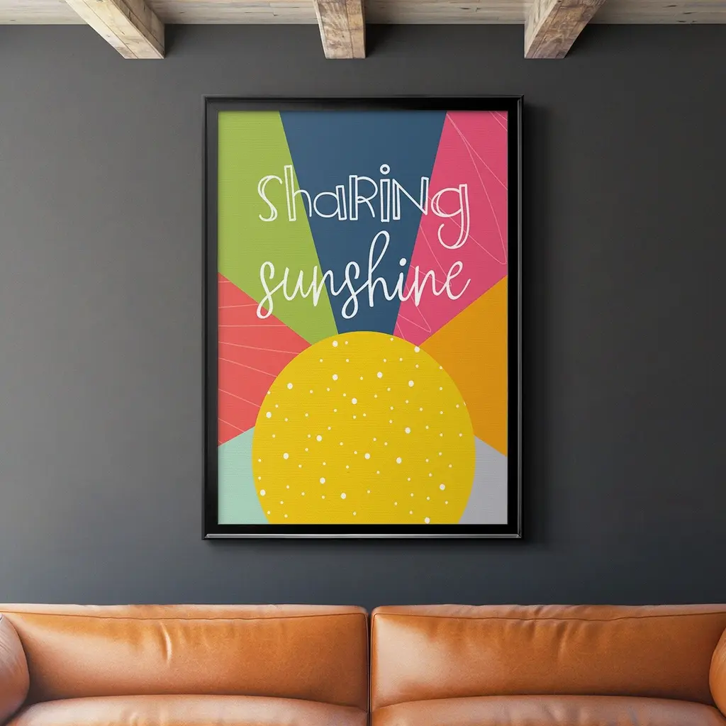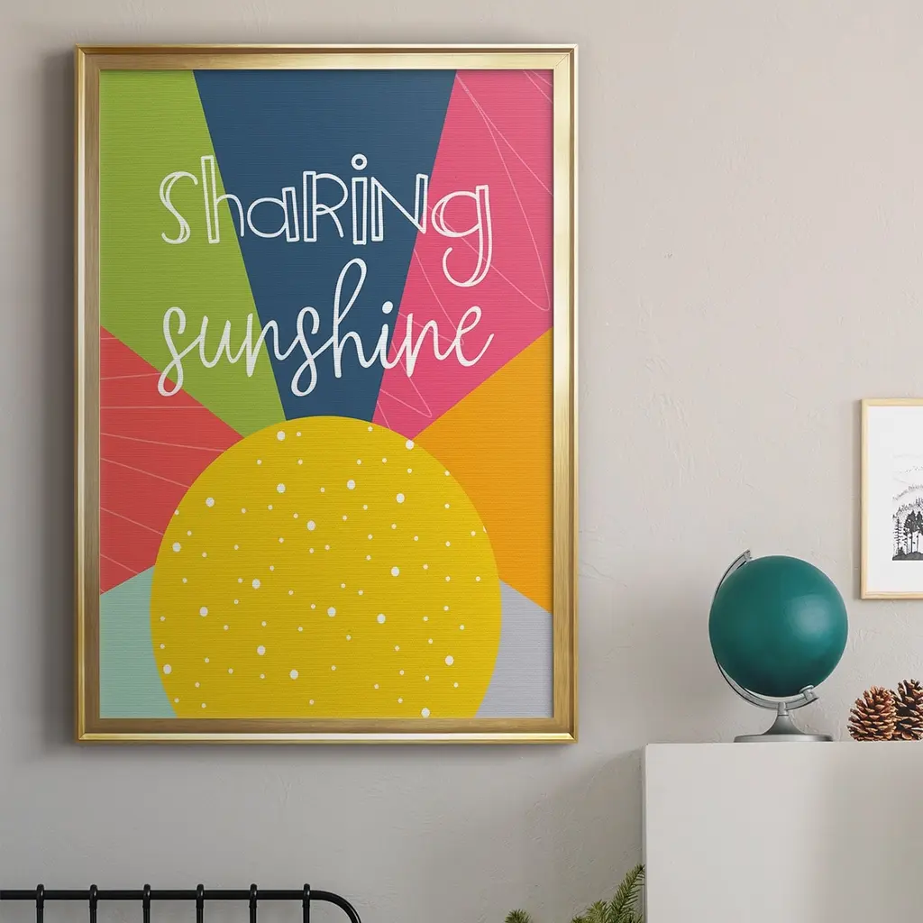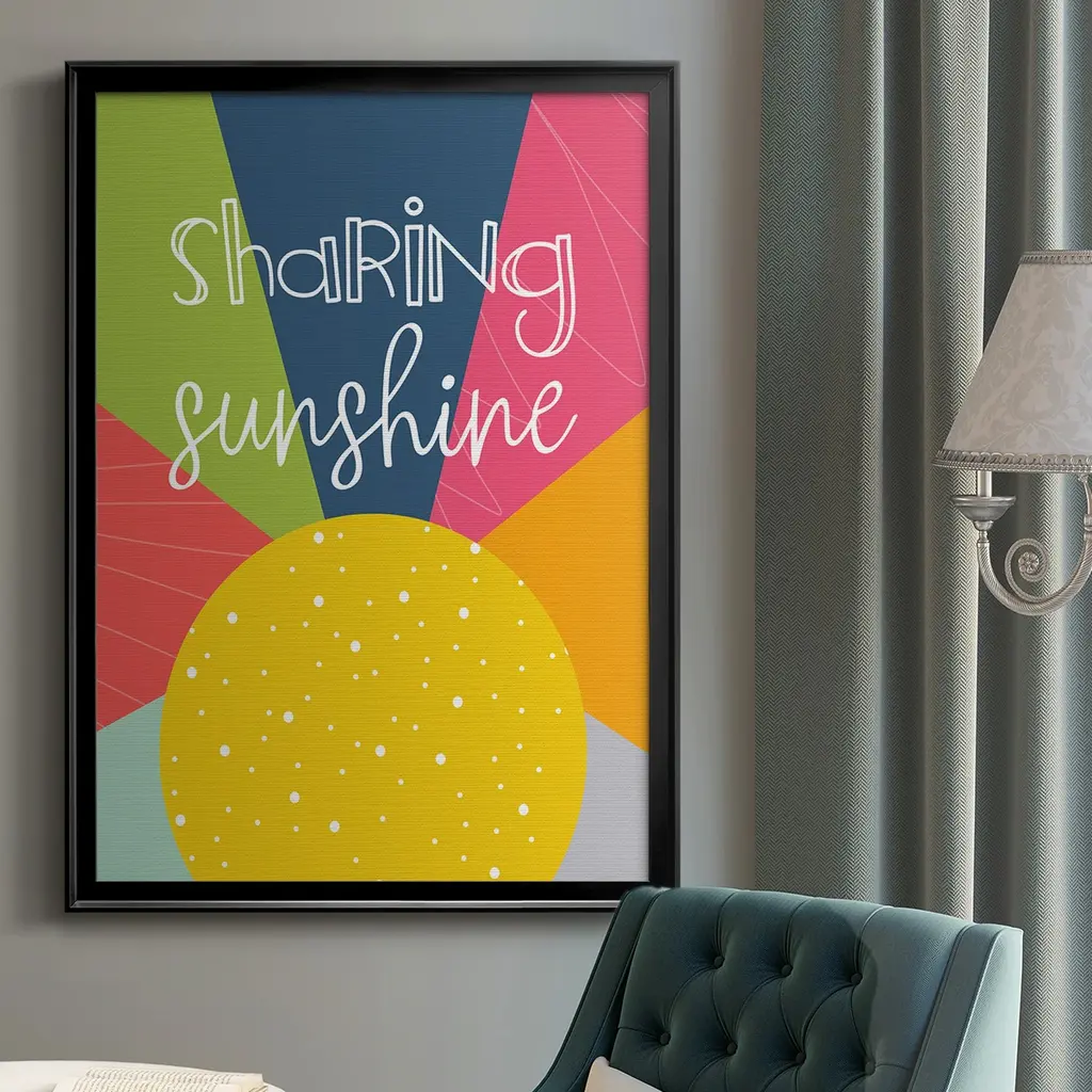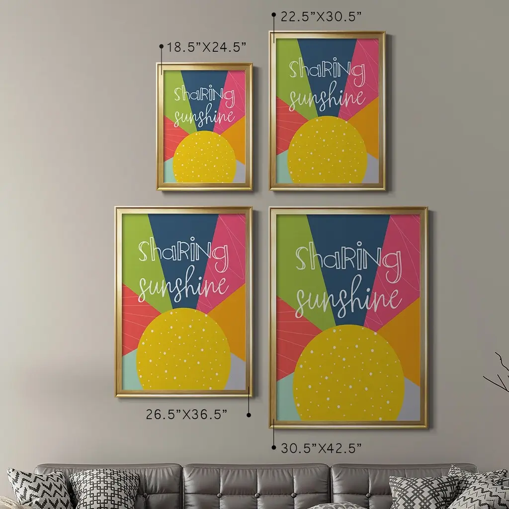 Sharing Sunshine Premium Framed Print - Ready to Hang A Premium Framed Print created to last. Framed in distressed wood and available in an array of sizes and colors Featuring a beveled a solid wood stretcher bar, each piece comes ready to hand 4 SIZES AVAILABLE 30.5''X42.5'' - Overall Size 26.5'X36.5'' - Overall Size 22.5''x30.5'' - Overall Size 18.5''x24.5'' - Overall Size Each piece is made to order. Each piece comes with hanging hardware. Made in the USA Ready to Hang