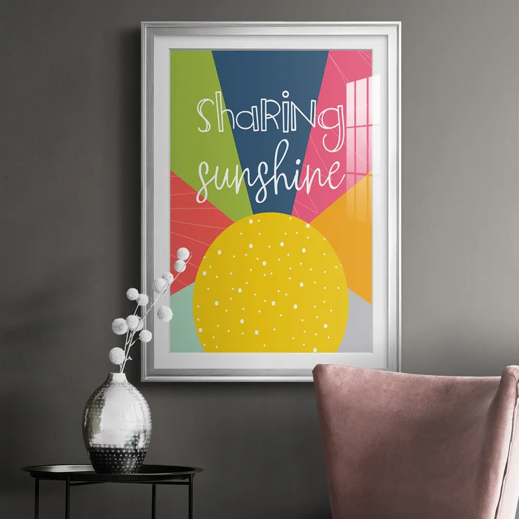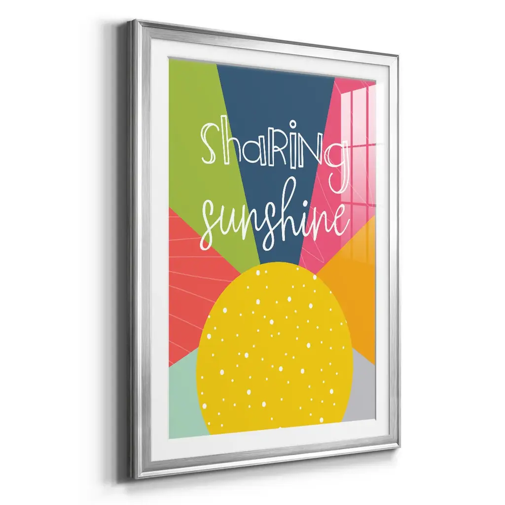 Sharing Sunshine Premium Framed Print - Ready to Hang A Premium Framed Print created to last. Framed in distressed wood and available in an array of sizes and colors Featuring a beveled a solid wood stretcher bar, each piece comes ready to hand 4 SIZES AVAILABLE 30.5''X42.5'' - Overall Size 26.5'X36.5'' - Overall Size 22.5''x30.5'' - Overall Size 18.5''x24.5'' - Overall Size Each piece is made to order. Each piece comes with hanging hardware. Made in the USA Ready to Hang Giclee Paper Print Acrylic Glass Beveled Matt Board