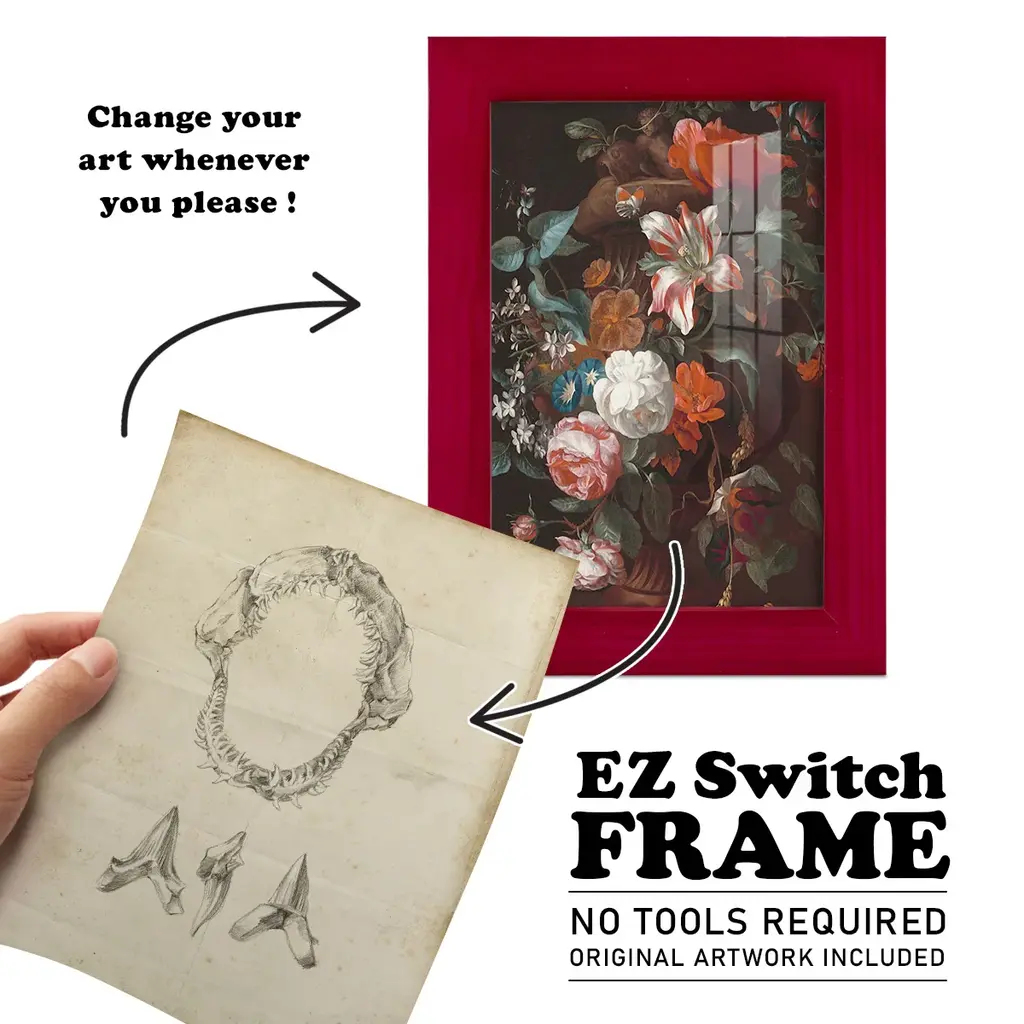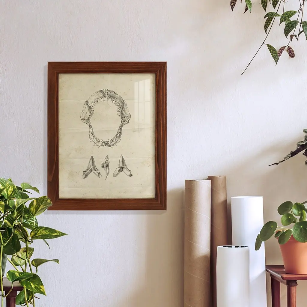 Shark Study I -EZ SWITCH Framed Print w/glass-Cherry Red A delightful, framed print. Featuring a solid wood frame with real wood glass. This premium print is giclee quality. In addition, every frame features a removable back and table top stand. This allows you to change your art in the future or to just stand the art on a table for a new look. We are sure you'll enjoy our new series of EZ SWITCH Framed Art. Solid Wood Frame Real Glass Removable / Replaceable Art Built in Tabletop Stand Sizes range from 4x6 up to 12x15 - buy just one or pair them up as sets as you see fit.