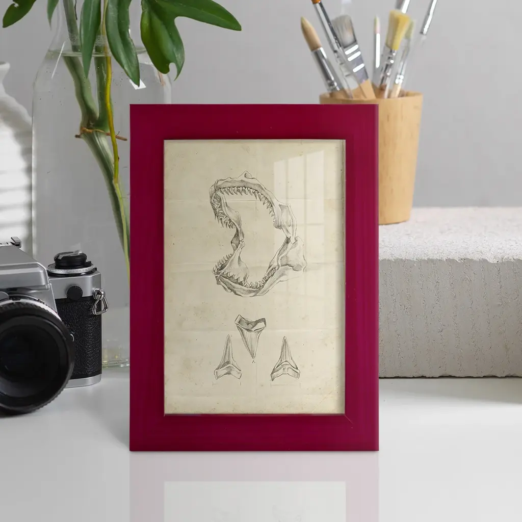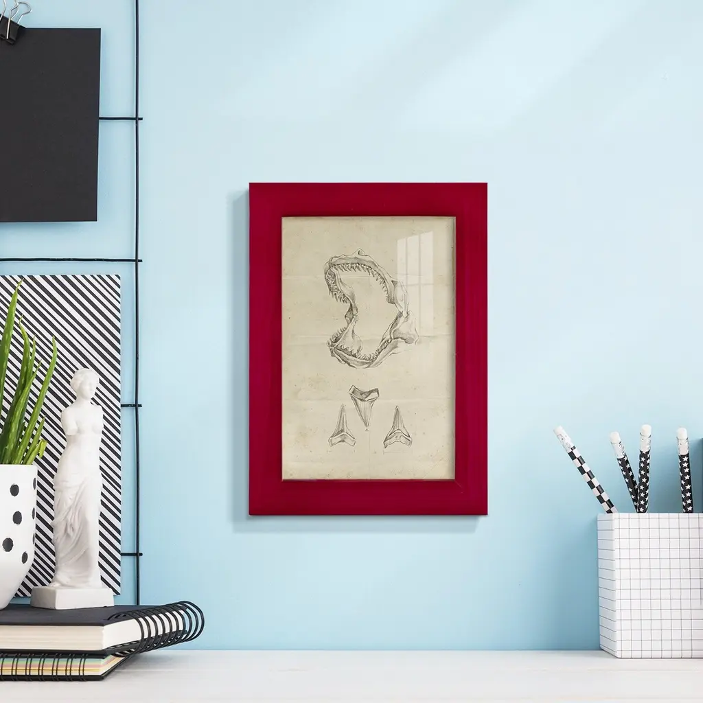 Shark Study II -EZ SWITCH Framed Print w/glass-Cherry Red A delightful, framed print. Featuring a solid wood frame with real wood glass. This premium print is giclee quality. In addition, every frame features a removable back and table top stand. This allows you to change your art in the future or to just stand the art on a table for a new look. We are sure you'll enjoy our new series of EZ SWITCH Framed Art. Solid Wood Frame Real Glass Removable / Replaceable Art Built in Tabletop Stand Sizes range from 4x6 up to 12x15 - buy just one or pair them up as sets as you see fit.