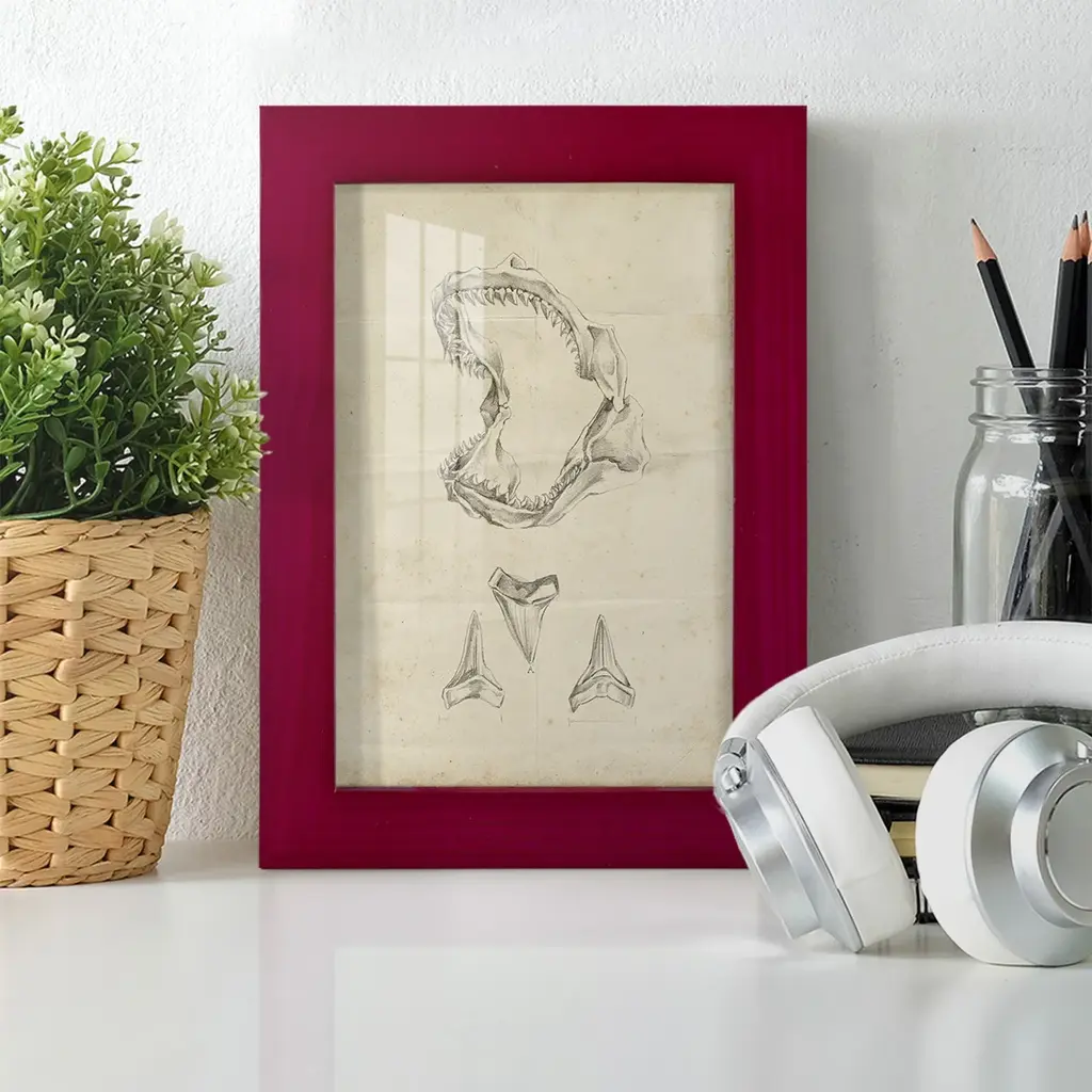Shark Study II -EZ SWITCH Framed Print w/glass-Cherry Red A delightful, framed print. Featuring a solid wood frame with real wood glass. This premium print is giclee quality. In addition, every frame features a removable back and table top stand. This allows you to change your art in the future or to just stand the art on a table for a new look. We are sure you'll enjoy our new series of EZ SWITCH Framed Art. Solid Wood Frame Real Glass Removable / Replaceable Art Built in Tabletop Stand Sizes range from 4x6 up to 12x15 - buy just one or pair them up as sets as you see fit.