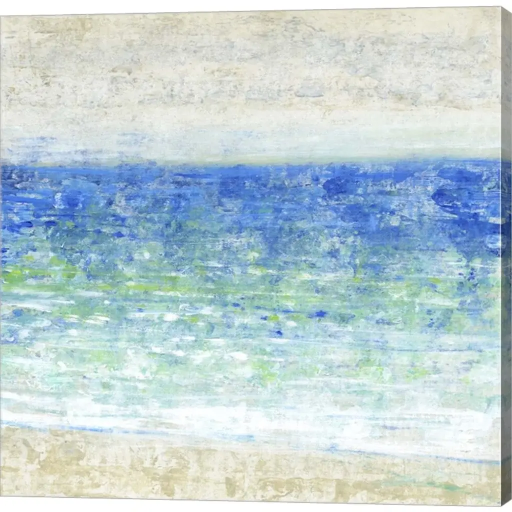 Aegean Seas I by Sharon Chandler is a high quality piece of canvas artwork. The finished size of this piece is 20" X 16", and it has a depth 0.75". There is a UV protective coating over the entire image, and it is ready to hang on your wall with no hardware required.