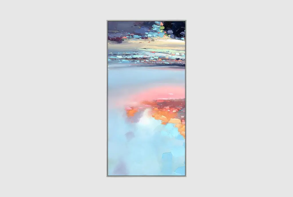 49"W X 65"H X 2"D Shaye Rawson's Drizzle is an inventive technique of layering media to achieve depth and richness. It is framed in antique gold.