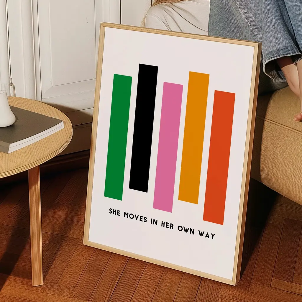 She Moves In Her Own Way Art PrintAvailable in sizes A2 (420 x 594 mm)A3 (297 x 420 mm)A4 (210 x 297 mm) All in the detailsSold without frameDesigned by Fanclub owners and sisters, Johanna and Felicity.Giclée printed in Nottingham UK on Munken pure smooth cream paper which is certified by the Rainforest Alliance Program for FSC® Standards.All A4 & A3 prints are packed in eco friendly 100% biodegradable poly bags A2 prints are shipped in cardboard tubes.Designed by Fanclub owners and sisters, Johanna and Felicity in our UK studio.