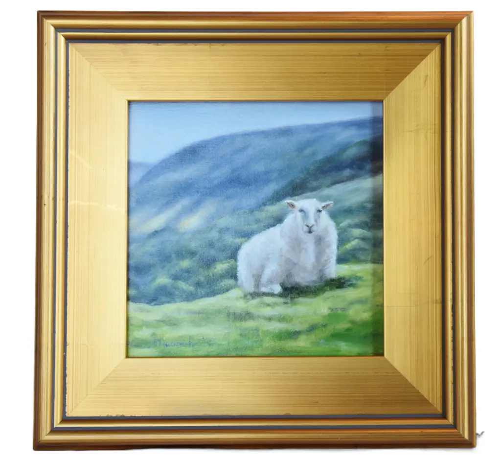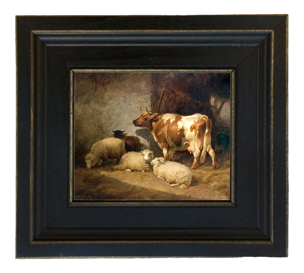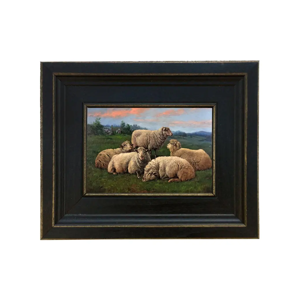 Sheep At Sunrise Framed Oil Painting Reproduction Print On Canvas - 4" X 6"