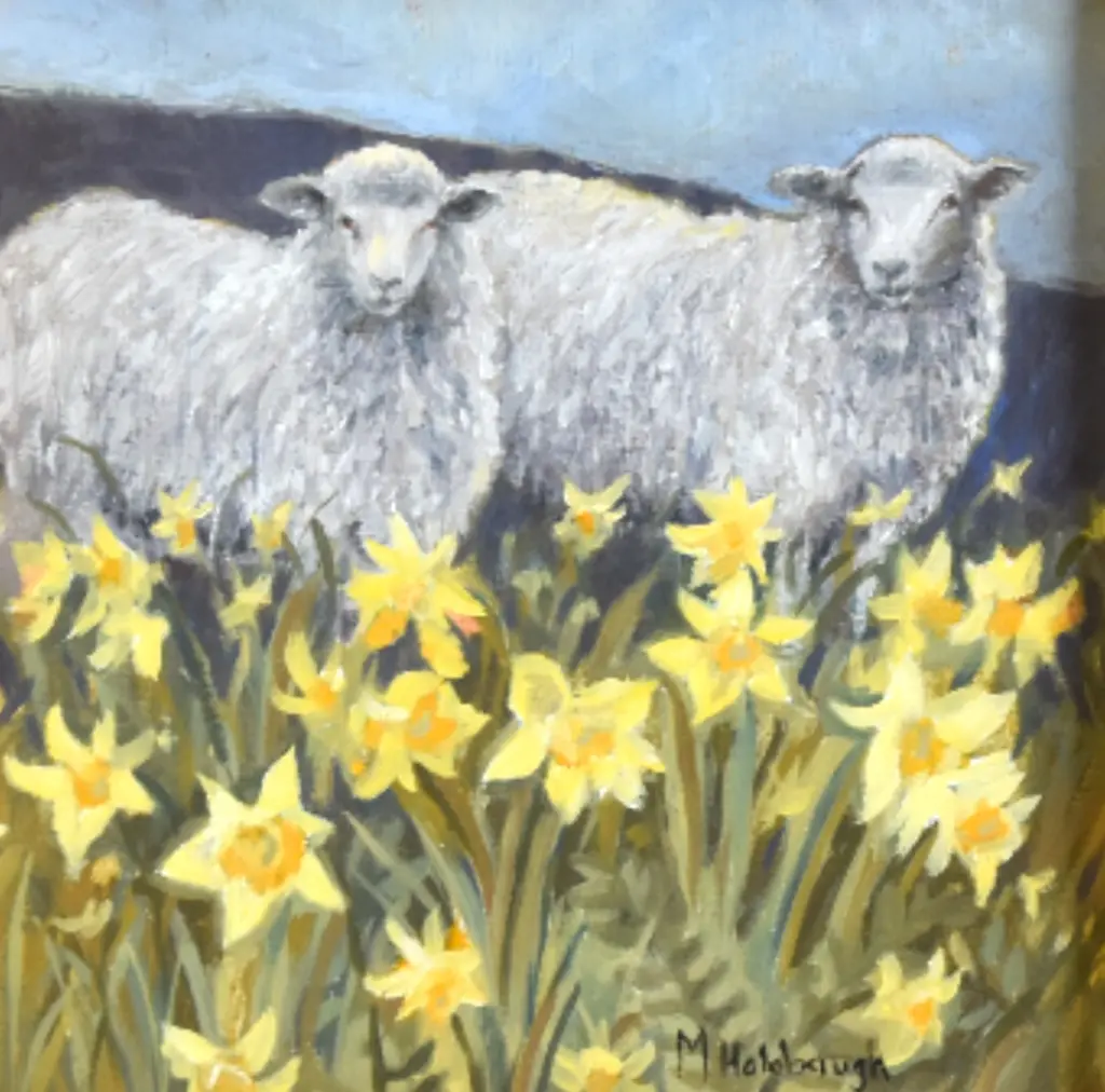 Sheep In A Field Of Daffodils Painting