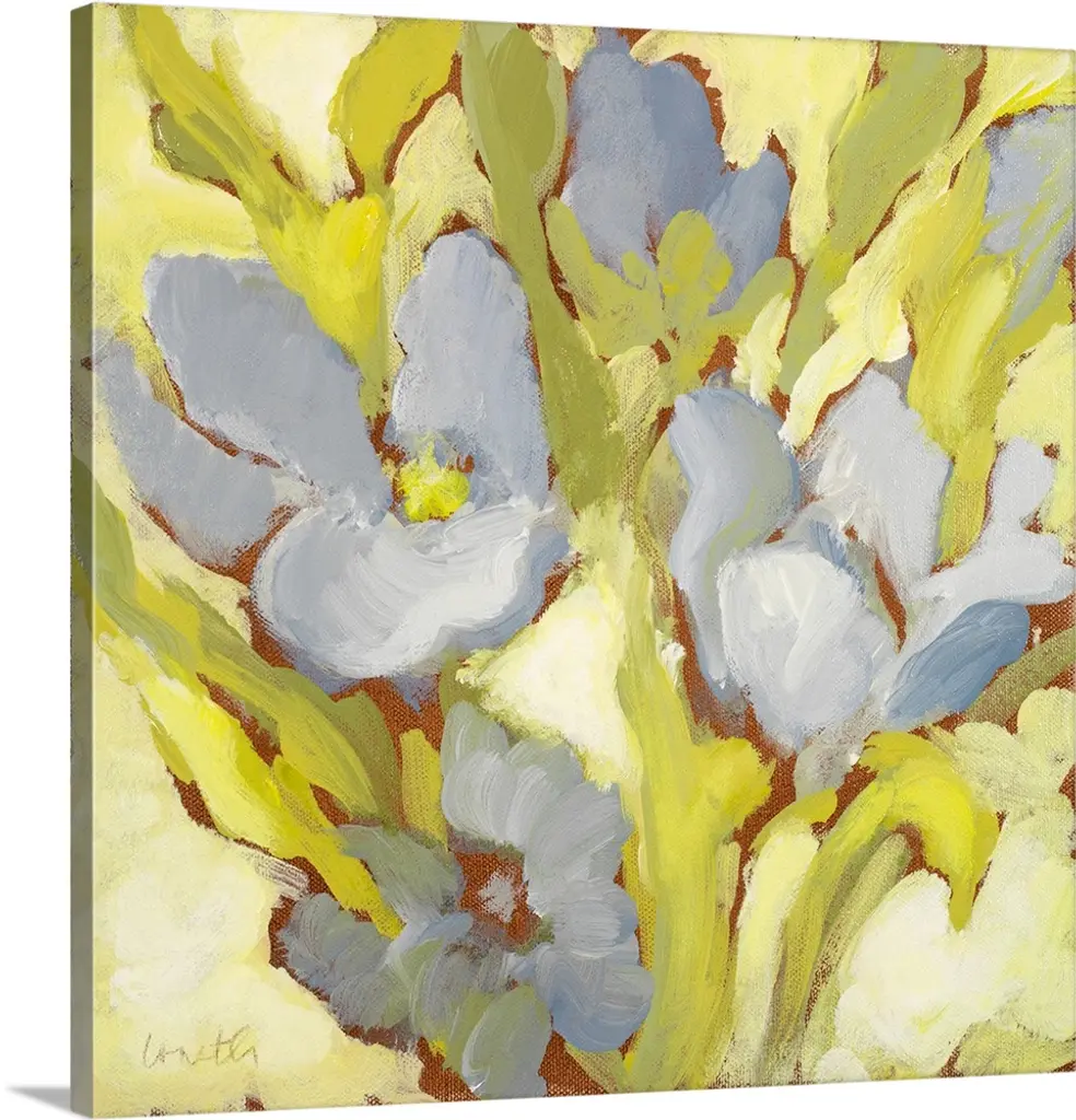 Summer Morning Blooms IV by Shelby Dillon is a high quality piece of canvas artwork. The finished size of this piece is 24" X 24", and it has a depth 1.5" with black painted sides. There is a UV protective coating over the entire image, and it is ready to hang on your wall with no hardware required.