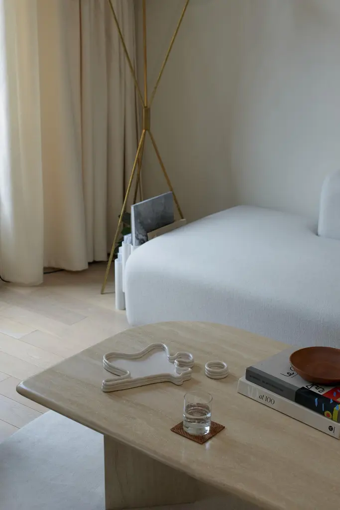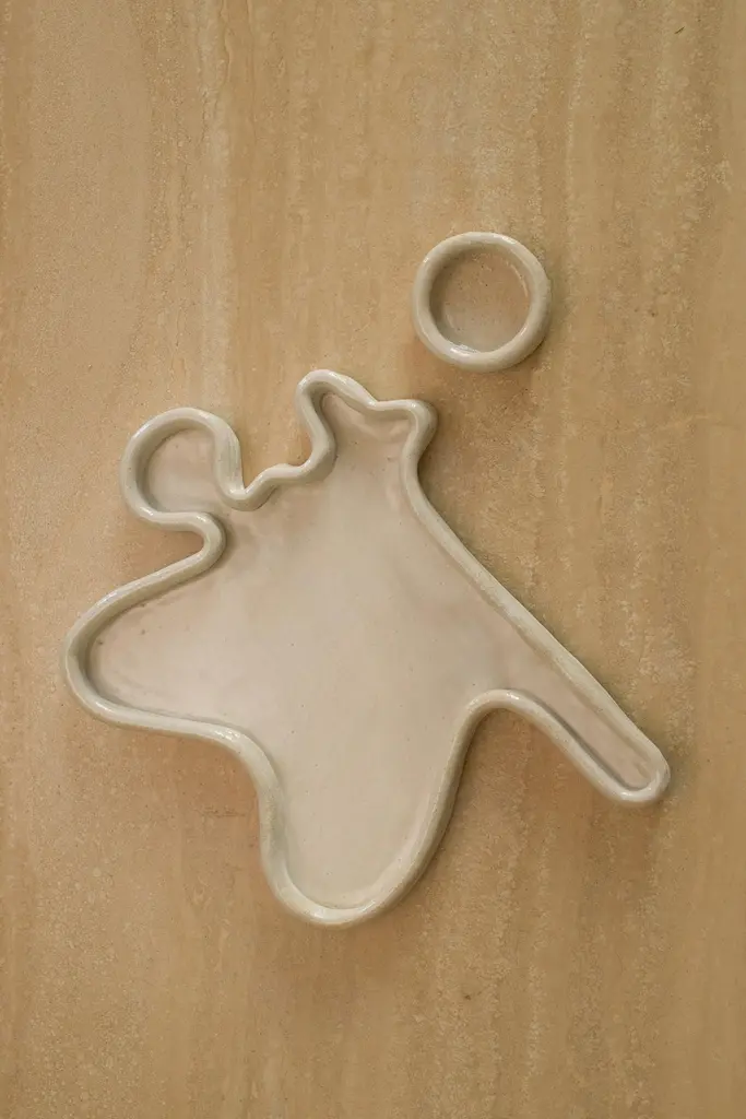 Shell I Vide Poche by Sophie ParacheyDimensions: W 34 x D 20 x H 3 cmDimensions satellite: W 6 x D 6 x H 3 cmMaterials: White stoneware, velvet white glaze,Inspired by extended stays in Central America, Sophie Parachey’s work questions transformation, the antagonism between the ancestral and the modern, and our relationship to the living world. Sophie intentionally handcrafts her ceramic artwork in stoneware or handpicked clay. Each piece expresses itself with its curves, textures, and resonances. Rough or smooth, they embody a paradoxical realm. Unrefined and primitive forms,reminiscent of organic magma flow, blend with softer, delicate, and more subtle shapes. A new balance seems to emerge from this surprising combination.