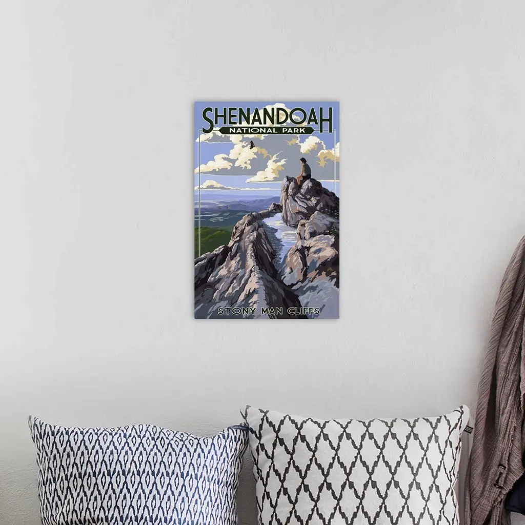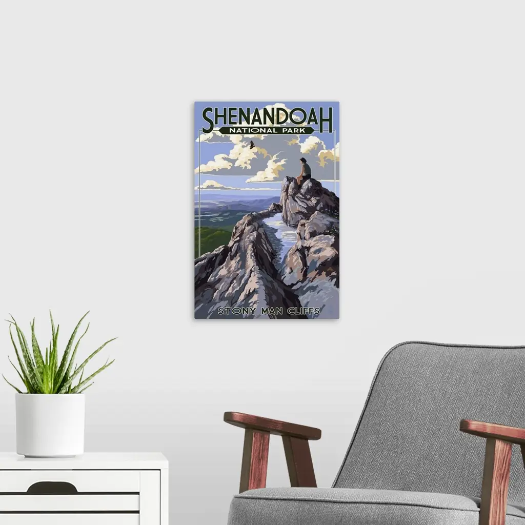 Shenandoah National Park, Virginia - Stony Man Cliffs View: Retro Travel Poster wall art for home and office decor. Discover canvas art prints, photos, mural, big canvas art and framed wall art in GreatBigCanvas.com's varied collections.