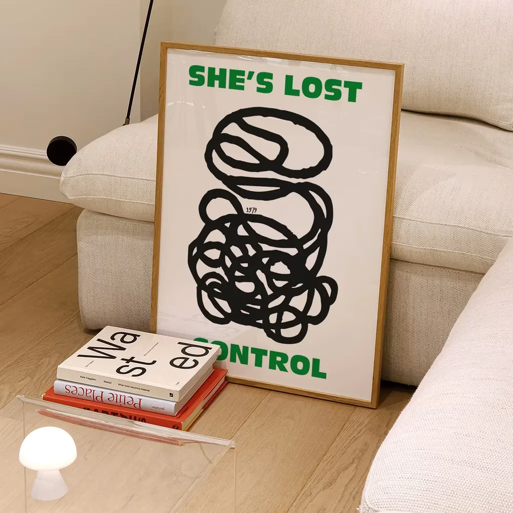 She's lost control again music inspired print. The perfect gift for any Joy Division fan or abstract art lover. Pair with green plants, mid century furniture and a dash of fresh sunlight for the ultimate chefs kiss! Sold without frameGiclée printed on Munken pure smooth cream paper which is certified by the Rainforest Alliance Program for FSC® Standards.