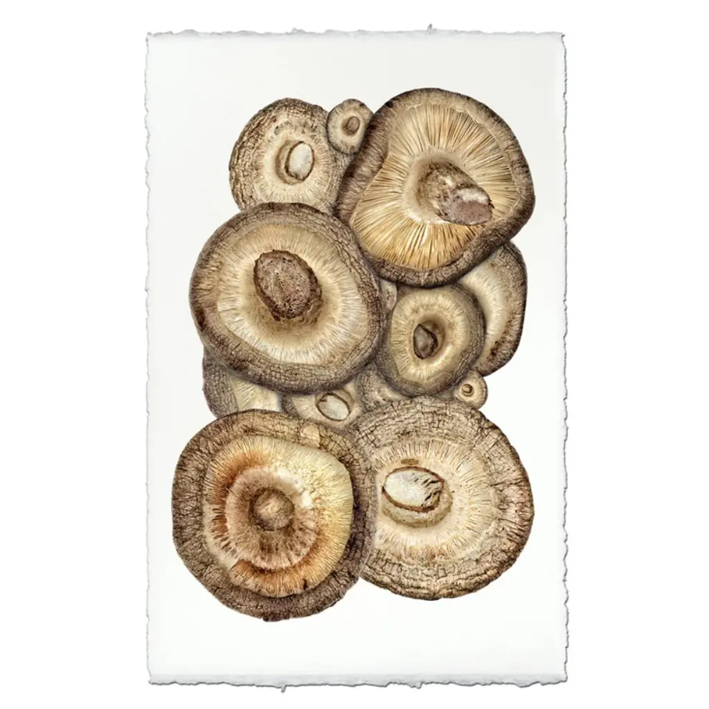 Inspired by the beautiful brown earthy tones and delicate ribbed texture , a study of shiitake mushrooms and its intricacies are expertly replicated. Art pieces can either be unframed (print only), or framed in a choice of archival wood frames or within an image clear acrylic frame. If unframed, a choice of additional “frameless” hanging options are available. The added-on framing options are shipped disassembled from the artwork. Hanging kits come complete with everything needed to hang a single print, including easy instructions. No damage is done to the print upon utilizing the hangers.
