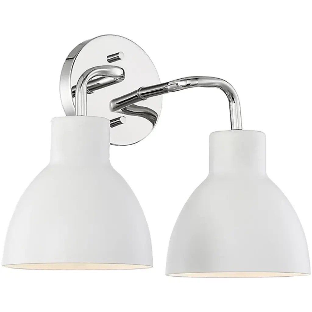 A clean, revealing light. Pair your bathroom mirror with the handsome contemporary design of the Shilo Vanity Light from Alder & Ore. The sharp piece feels at home with a bathroom's refined décor. It mounts on top of the mirror with a compact backplate that installs flush against the wall. Dual metal shades charm in their soft curves and minimalist silhouette. The shades are painted inside to give light pouring out a glare-free quality. When turned on, the bulbs hidden inside generate a clean stream of light through the openings. The dual lighting setup fills up the bathroom for a comfortable experience.