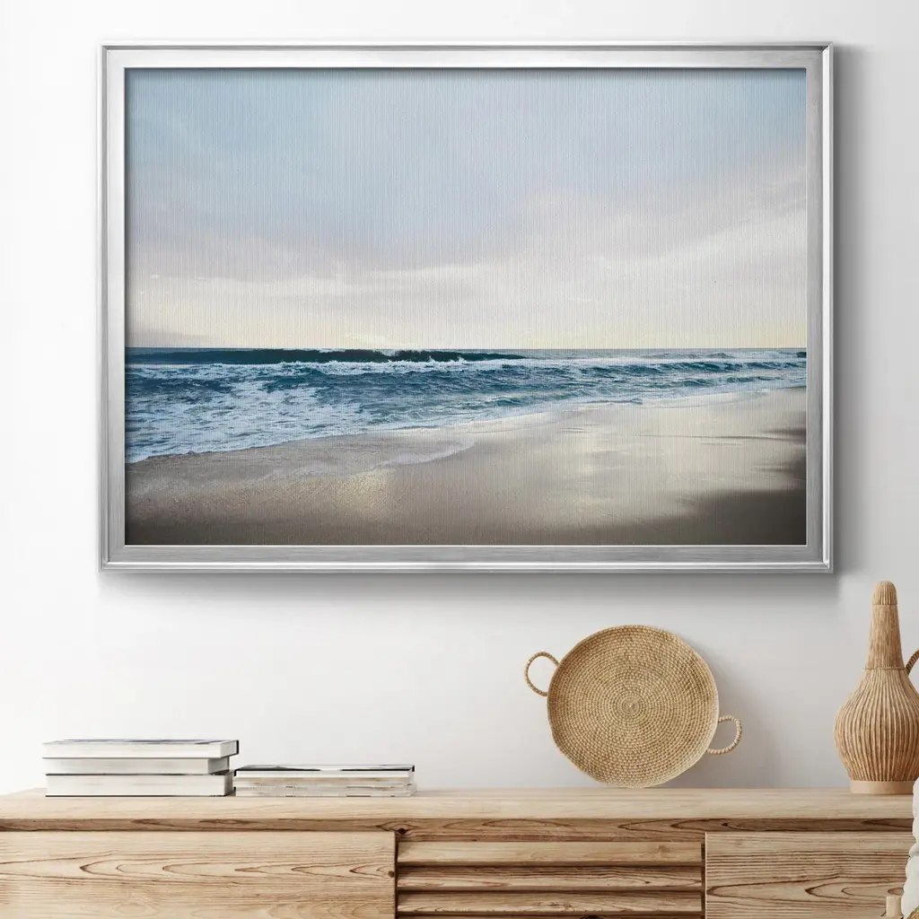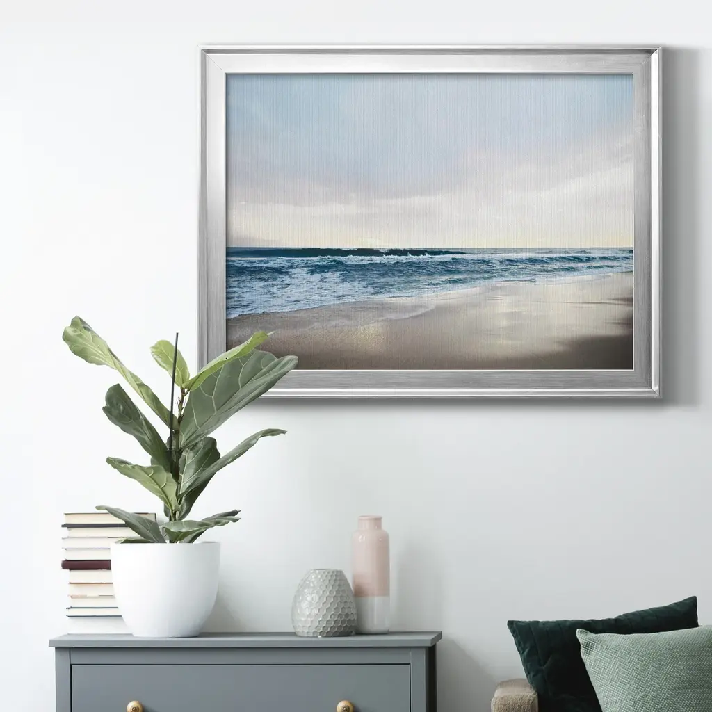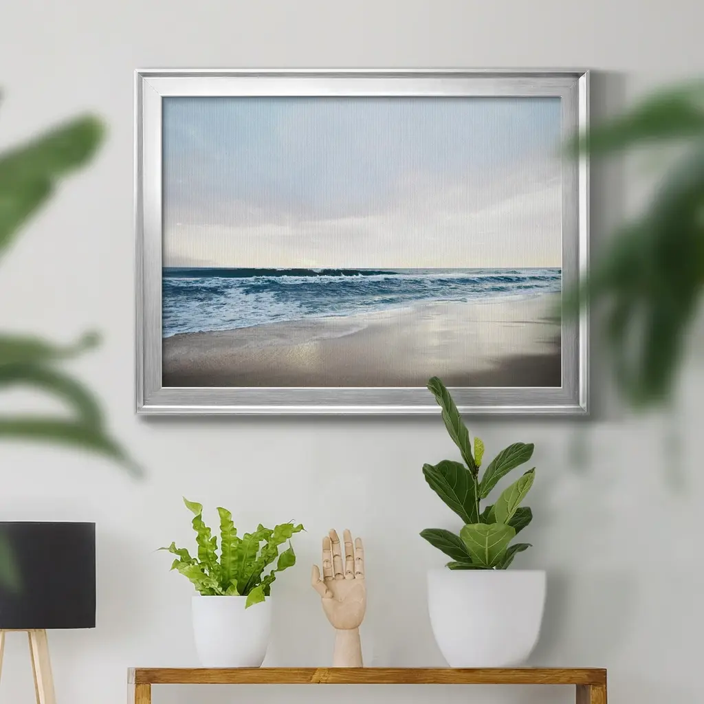 Shimmering Dawn Premium Framed Canvas - Ready to Hang A Premium Framed Canvas created to last. Framed in distressed wood and available in an array of sizes and colors Featuring a beveled a solid wood stretcher bar, each piece comes ready to hand 4 SIZES AVAILABLE 30.5''X42.5'' - Overall Size 26.5'X36.5'' - Overall Size 22''x30'' - Overall Size 18''x24'' - Overall Size Each piece is made to order. Each piece comes with hanging hardware. Made in the USA Ready to Hang Giclee Paper Print Acrylic Glass Beveled Matt Board