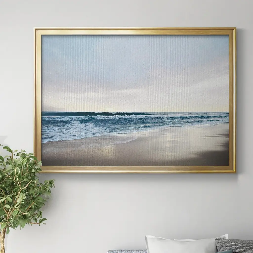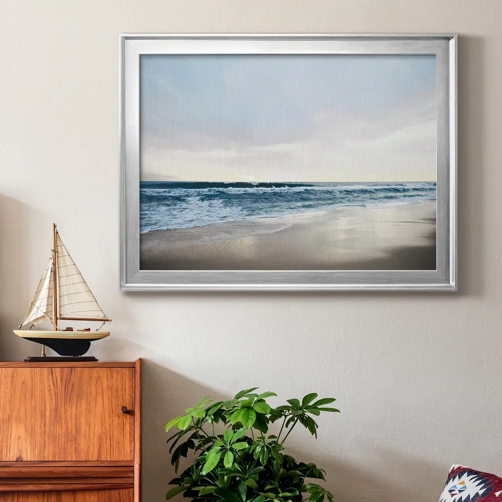 Shimmering Dawn Premium Framed Canvas - Ready to Hang A Premium Framed Canvas created to last. Framed in distressed wood and available in an array of sizes and colors Featuring a beveled a solid wood stretcher bar, each piece comes ready to hand 4 SIZES AVAILABLE 30.5''X42.5'' - Overall Size 26.5'X36.5'' - Overall Size 22''x30'' - Overall Size 18''x24'' - Overall Size Each piece is made to order. Each piece comes with hanging hardware. Made in the USA Ready to Hang Giclee Paper Print Acrylic Glass Beveled Matt Board