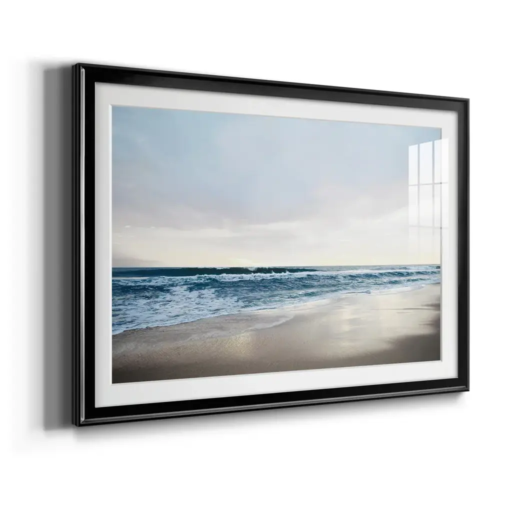 Shimmering Dawn Premium Framed Print - Ready to Hang A Premium Framed Print created to last. Framed in distressed wood and available in an array of sizes and colors Featuring a beveled a solid wood stretcher bar, each piece comes ready to hand 4 SIZES AVAILABLE 30.5''X42.5'' - Overall Size 26.5'X36.5'' - Overall Size 22''x30'' - Overall Size 18''x24'' - Overall Size Each piece is made to order. Each piece comes with hanging hardware. Made in the USA Ready to Hang Giclee Paper Print Acrylic Glass Beveled Matt Board
