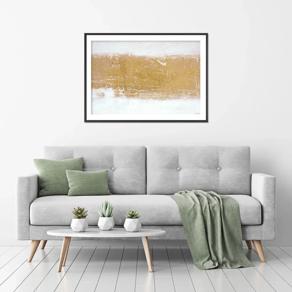 Shimmering gold brushstrokes centered on a white distressed print beautify this horizontal abstract art. The decorative Norman Wyatt artwork, 'Shimmering Light I' will complement your space with its transtional and contemporary aesthetic. This piece is handcrafted in Chattanooga, Tennessee by Ready2HangArt using a locally sourced artist print, with a frame and a rear hanger for simple installation. Offering a wide range of transitional subjects and unique textures, Norman Wyatt's collections will add interest to any modern or contemporary decor.