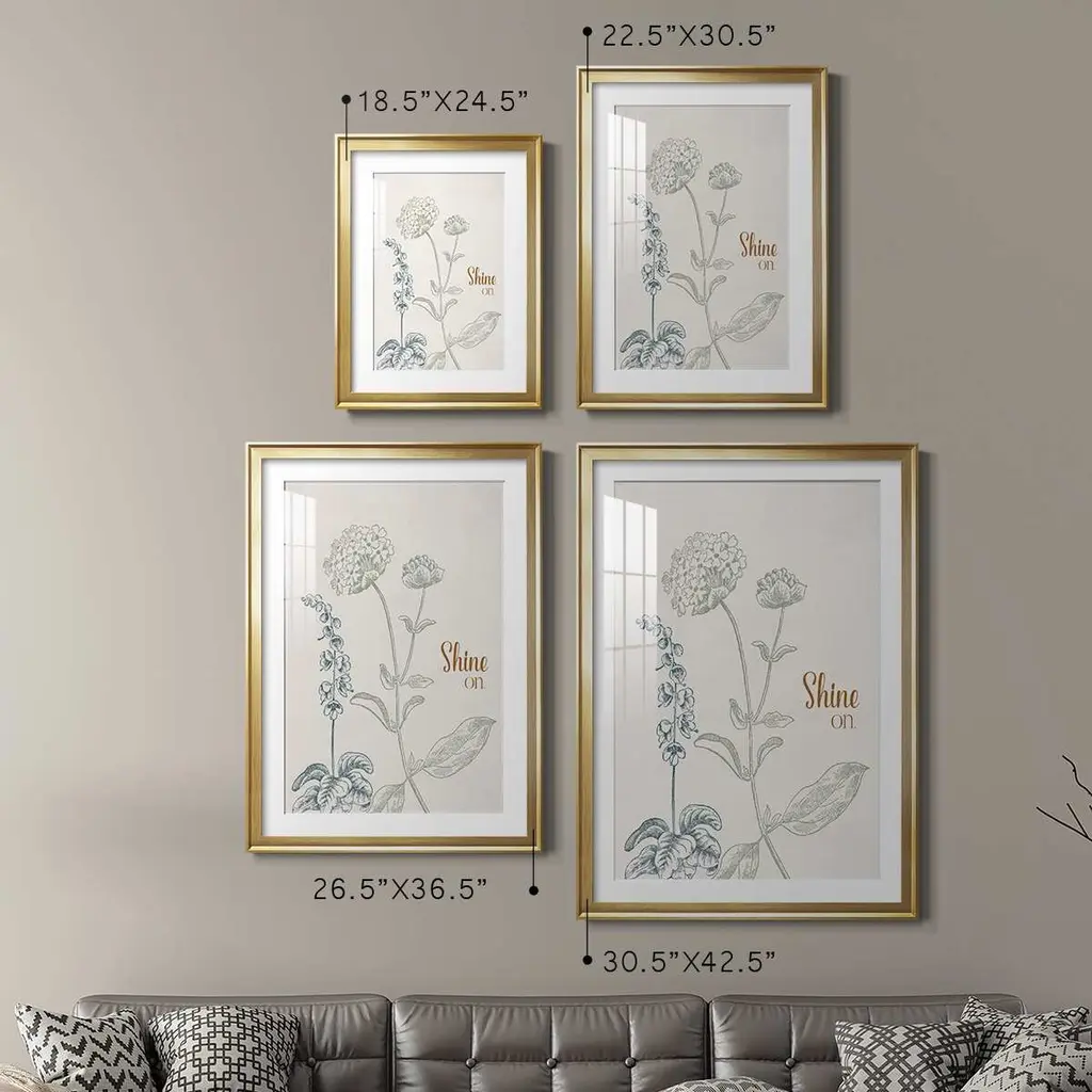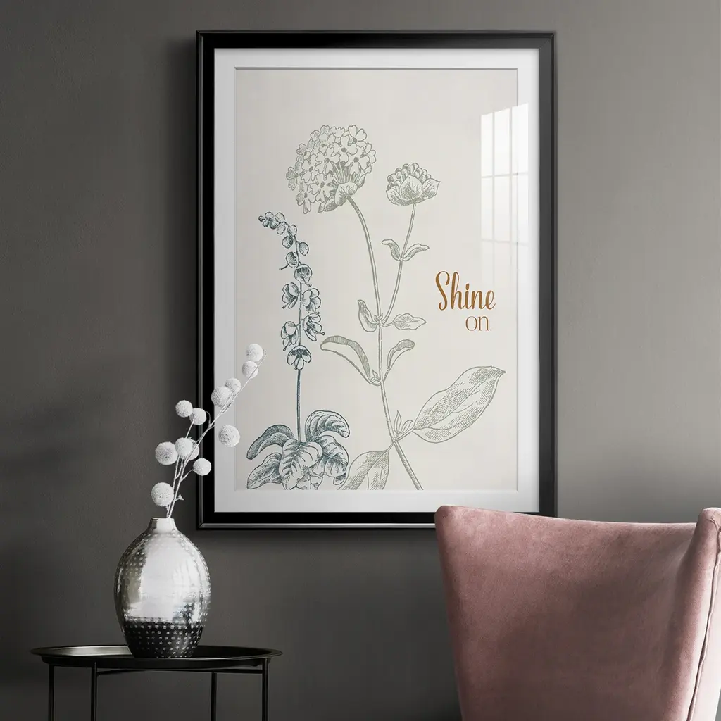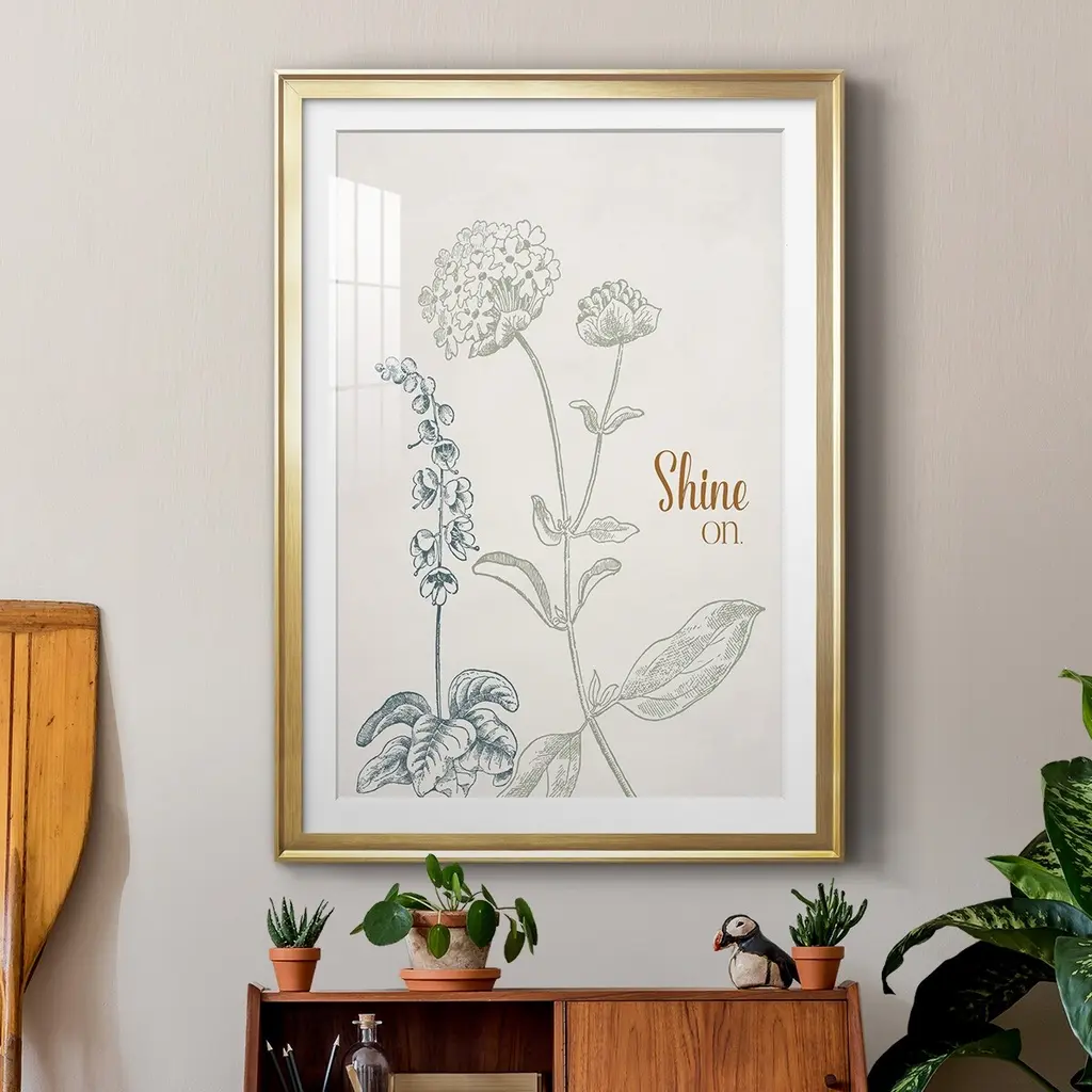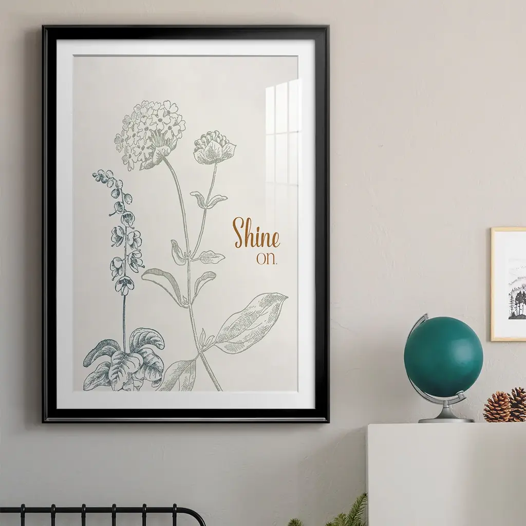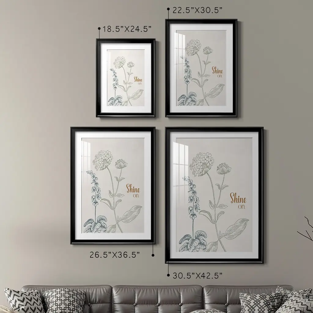 Shine On Premium Framed Print - Ready to Hang A Premium Framed Print created to last. Framed in distressed wood and available in an array of sizes and colors Featuring a beveled a solid wood stretcher bar, each piece comes ready to hand 4 SIZES AVAILABLE 30.5''X42.5'' - Overall Size 26.5'X36.5'' - Overall Size 22.5''x30.5'' - Overall Size 18.5''x24.5'' - Overall Size Each piece is made to order. Each piece comes with hanging hardware. Made in the USA Ready to Hang Giclee Paper Print Acrylic Glass Beveled Matt Board