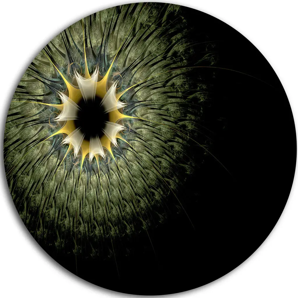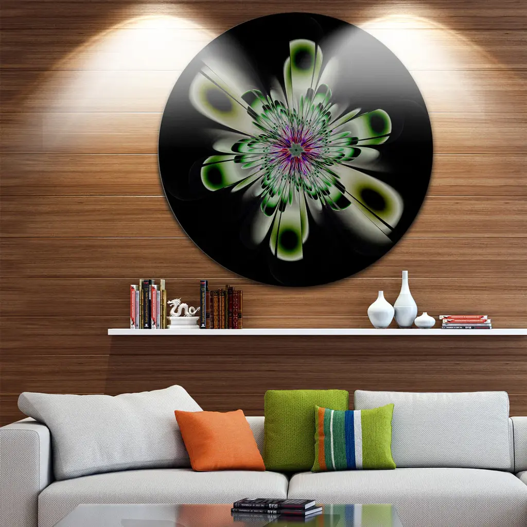 Bring Contemporary Abstraction to your home with this large Circle Metal wall art. This Shiny Crystal Light Green Fractal Flower Metal Artwork makes it the focal point of any room or office. - White Gloss Coating ensures colors are extra vibrant with light reflection.- Aluminum grade Sheet Metal with 1 inch mounting frame on the back giving the illusion that the artwork is floating on the wall..- Mounting Brackets are included along with instructions.- High Quality Digital images are created directly into a glossy aluminum panel producing a stunning and captivating print into the glossy finish of the metal.- Water, Fire and Scratch resistant HD Aluminum panels.- Looks better than any photo paper and guaranteed to last at least 20 years- Easy to clean with a microfiber cloth. Colors are far superior to regular Canvas Art. - Easy to Hang