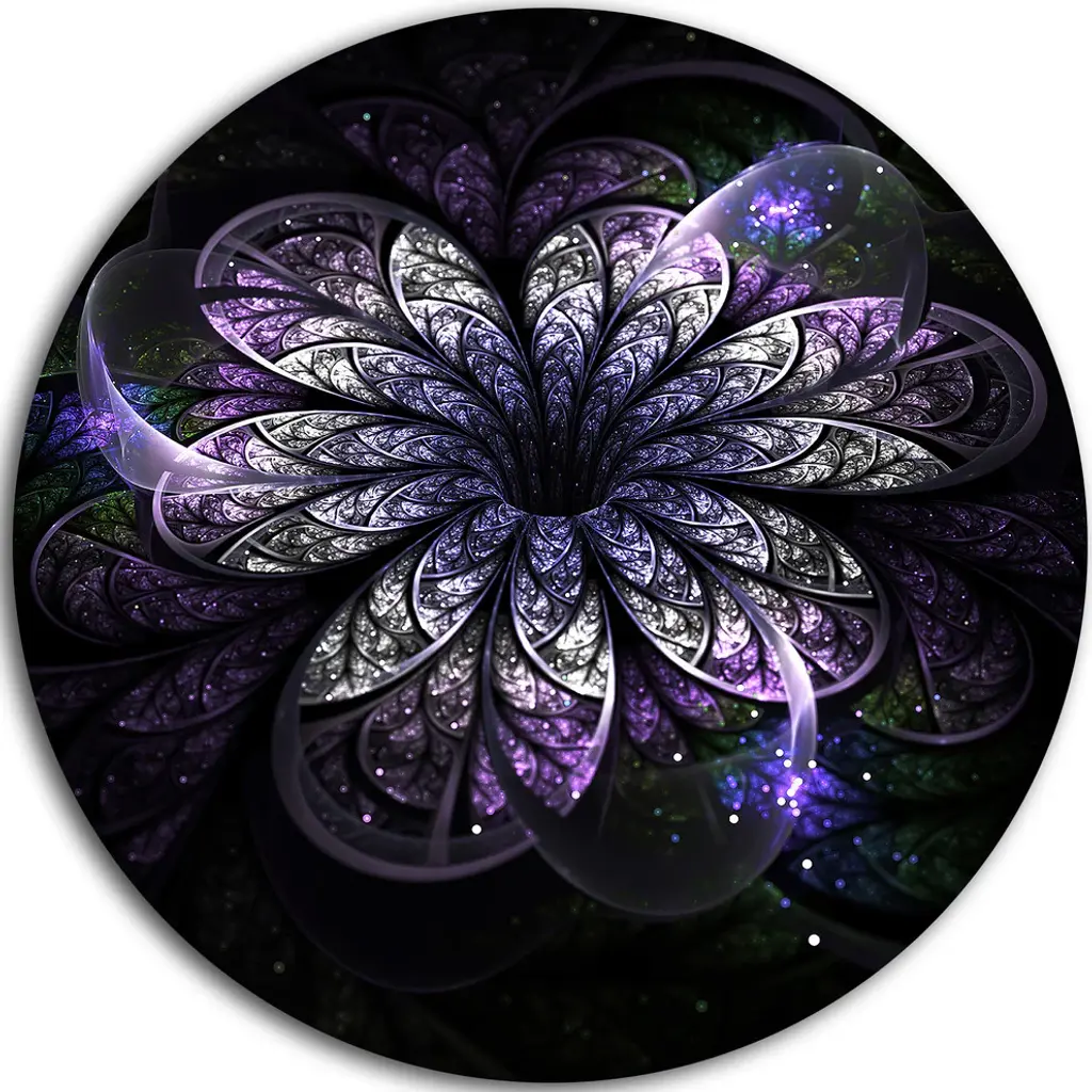 Bring Contemporary Abstraction to your home with this large Circle Metal wall art. This Shiny Fractal Flower with Bokeh Effect Metal Artwork makes it the focal point of any room or office. - White Gloss Coating ensures colors are extra vibrant with light reflection.- Aluminum grade Sheet Metal with 1 inch mounting frame on the back giving the illusion that the artwork is floating on the wall..- Mounting Brackets are included along with instructions.- High Quality Digital images are created directly into a glossy aluminum panel producing a stunning and captivating print into the glossy finish of the metal.- Water, Fire and Scratch resistant HD Aluminum panels.- Looks better than any photo paper and guaranteed to last at least 20 years- Easy to clean with a microfiber cloth. Colors are far superior to regular Canvas Art. - Easy to Hang
