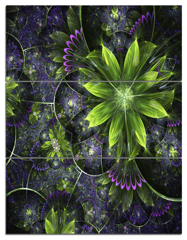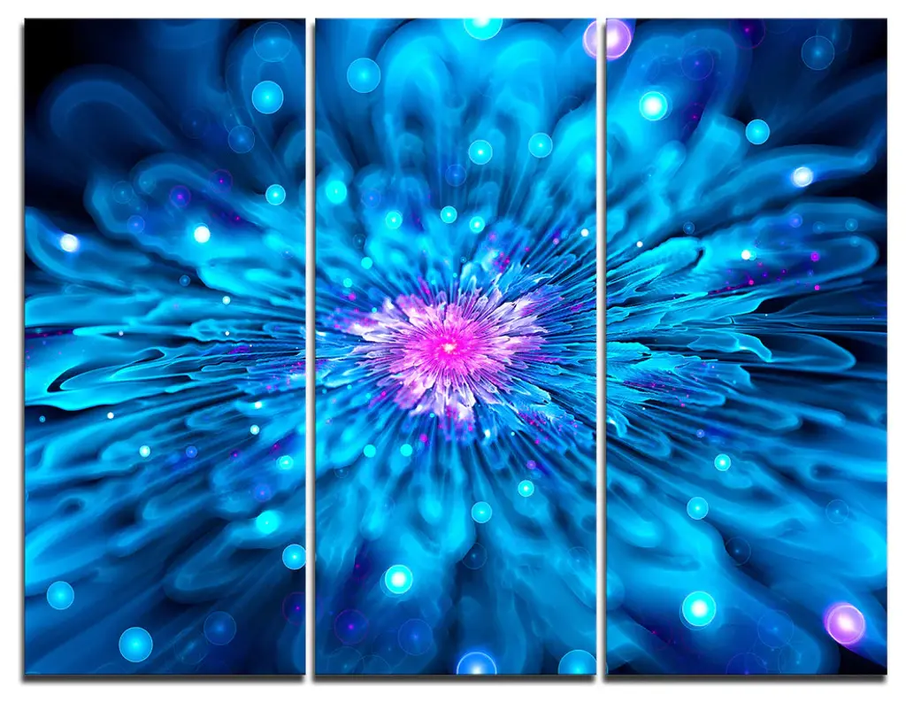 "Shiny Fractal Flower With Bokeh Effect" Metal Wall Art, 3 Panels, 28"x36"