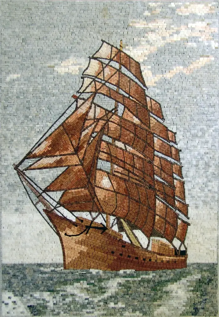 Introducing our exquisite Ship Mosaic Artwork, a stunning piece of nautical elegance that will transport you to the serene shores of the ocean. This masterful artwork features a meticulously crafted depiction of a ship gracefully sailing across the vast sea, inviting you to imagine the gentle sway of the waves and the salty breeze in the air. What sets this artwork apart is its unique composition, made entirely from natural stone and tiles, ensuring that each piece is not only visually striking but also durable and long-lasting. The combination of rich textures and vibrant colors found in the natural stones creates a captivating visual display that will enhance any space, be it your living room, office, or gallery wall.Every inch of our Ship Mosaic Artwork reveals the skilled craftsmanship and artistry that goes into creating such a timeless piece. The intricate details capture the essence of maritime adventure, while the calm sea serves as a reminder of the beauty and tranquility found in nature. Display this artwork as a focal point in your home, or gift it to a loved one who shares a passion for the sea and exploration. Whether you are a modern art enthusiast, a nautical lover, or simply someone who appreciates the beauty of hand-crafted pieces, this mosaic artwork is sure to inspire and evoke a sense of wanderlust. Bring the spirit of the ocean into your space and experience the captivating charm of our Ship Mosaic Artwork today. It’s more than just decor; it's a story waiting to be told.