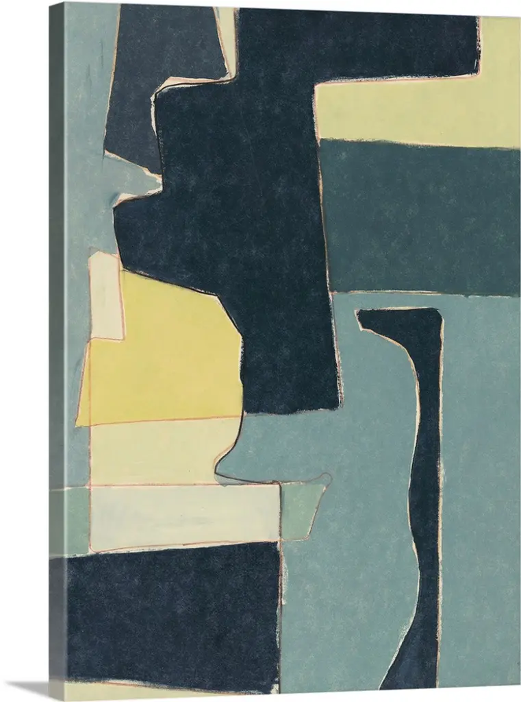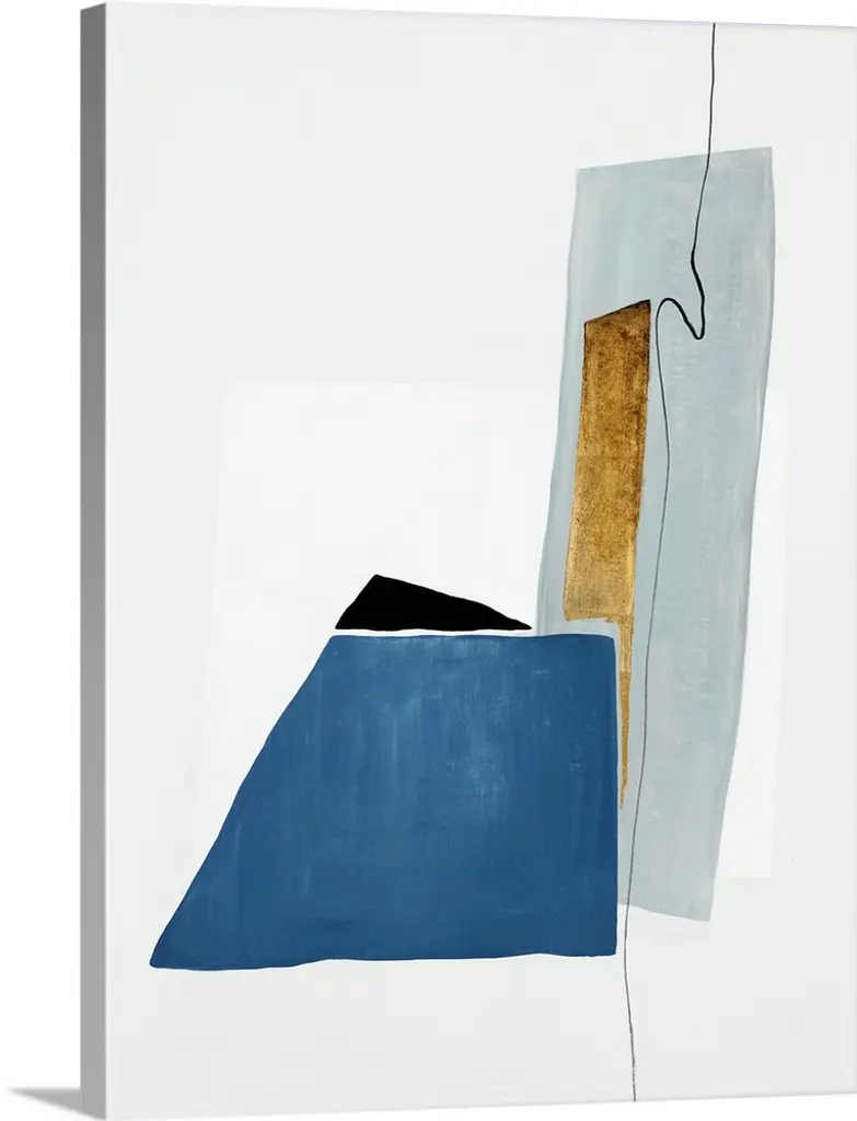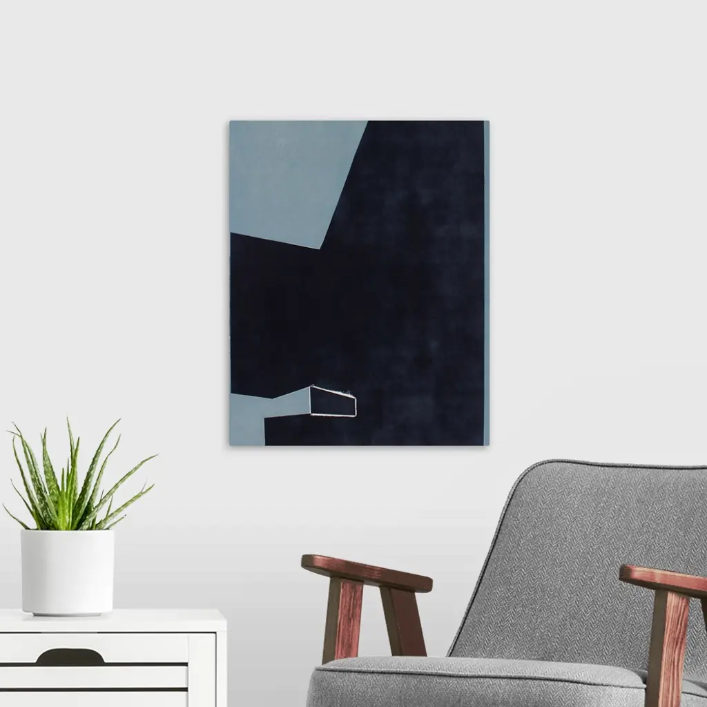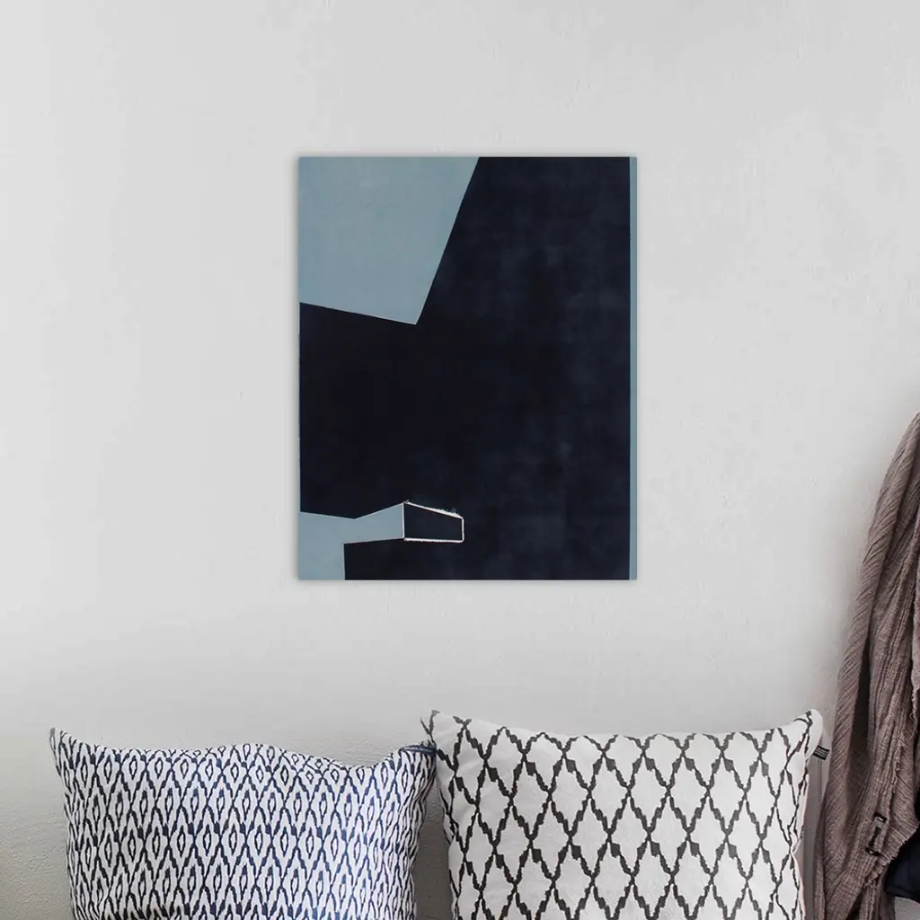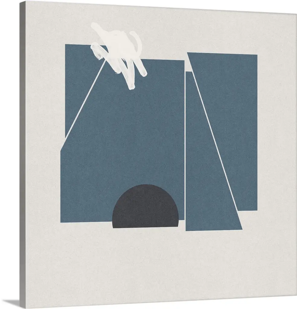Minimalist artwork comprised of black polygonal shapes on a blue gray background.
