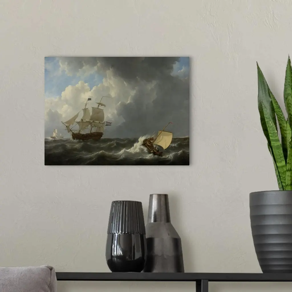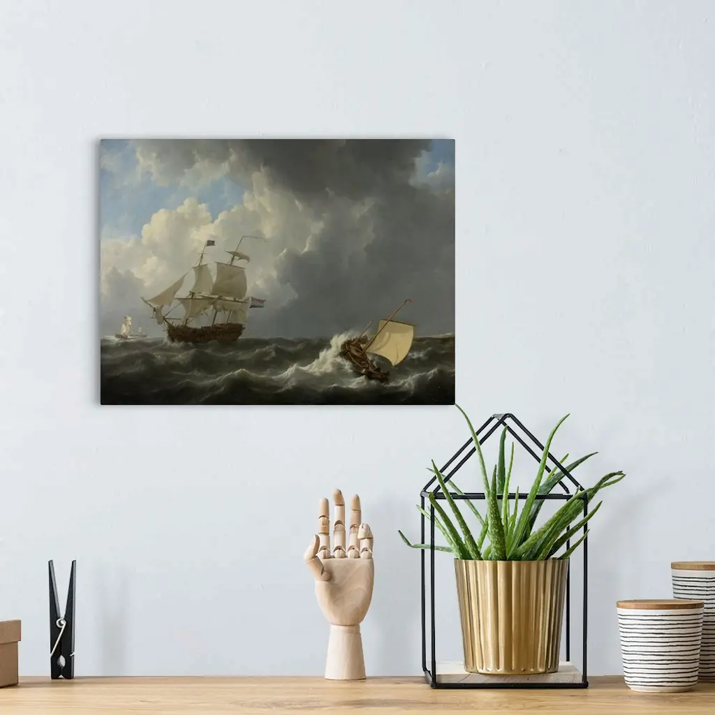 Ships In A Turbulent Sea, 1826, Dutch Painting, Oil On Canvas