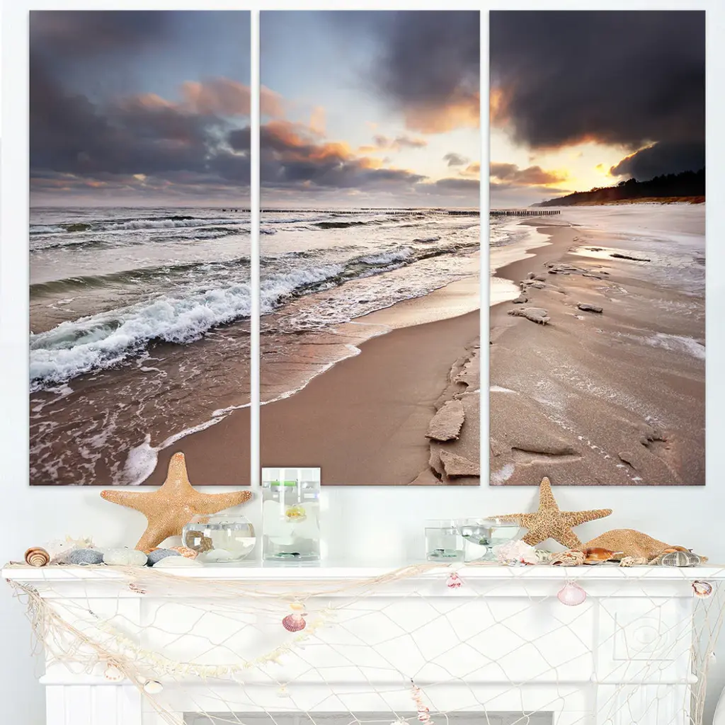 "Shore Of Baltic Sea During Winter" Metal Wall Art, 3 Panels, 36"x28"