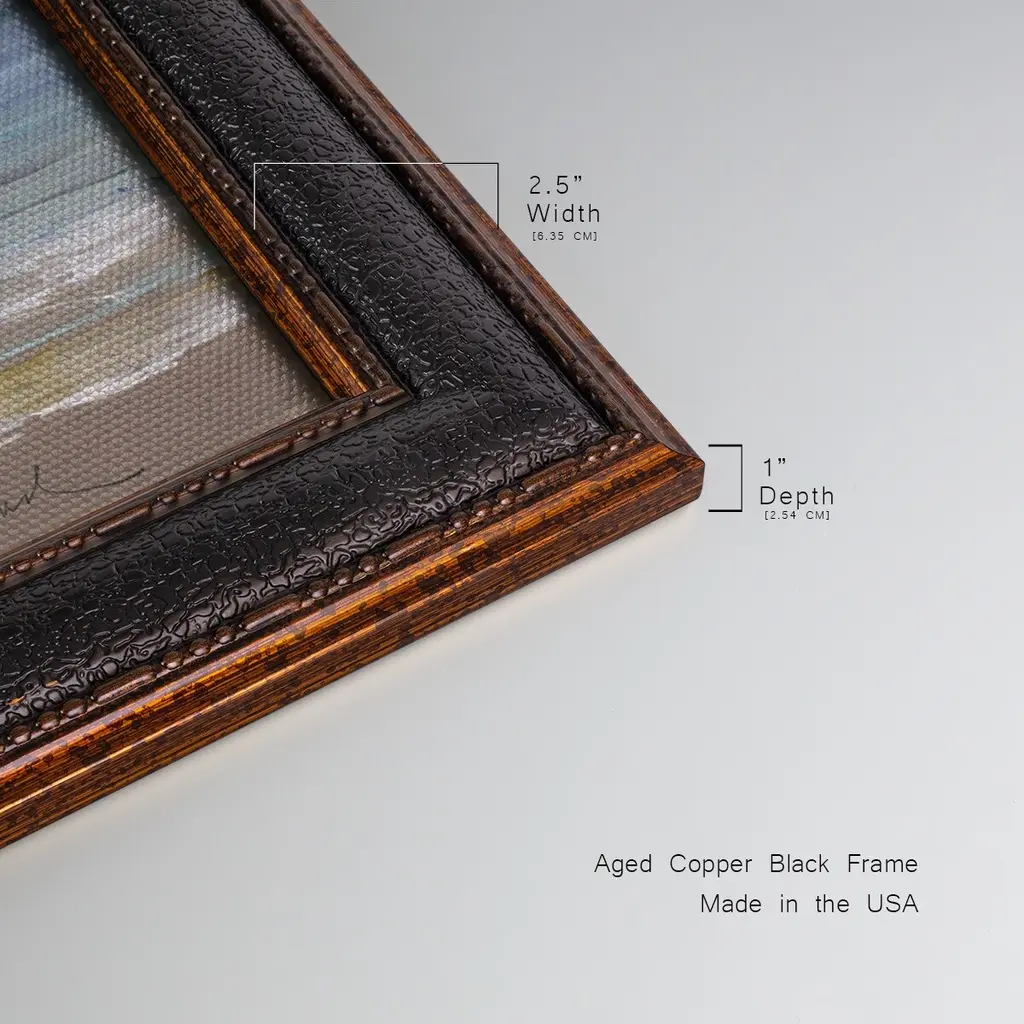 Shore Searching II Premium Framed Canvas- Ready to Hang A Premium Framed Canvas created to last. Framed in distressed wood and available in an array of sizes and colors Featuring a beveled a solid wood stretcher bar, each piece comes ready to hand 3 SIZES AVAILABLE 21''X37'' - Overall Size 25''X45'' - Overall Size 29''x53'' - Overall Size Each piece is made to order. Each piece comes with hanging hardware. Made in the USA Ready to Hang Giclee Paper Print Acrylic Glass Beveled Matt Board