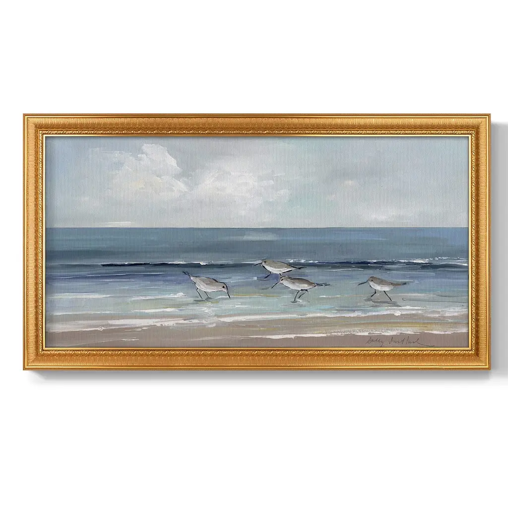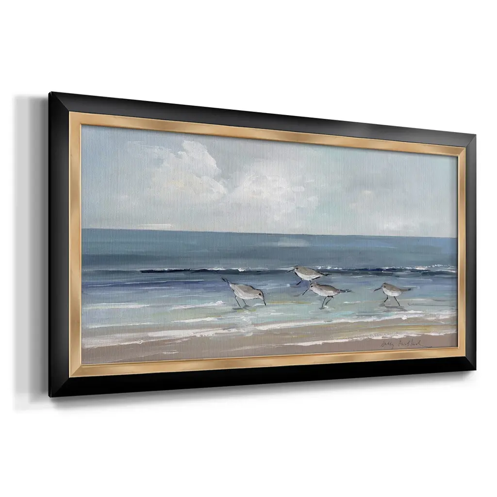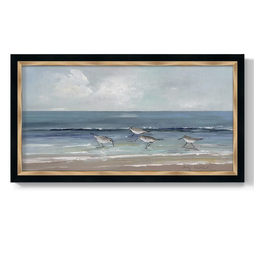 Shore Searching II Premium Framed Canvas- Ready to Hang A Premium Framed Canvas created to last. Framed in distressed wood and available in an array of sizes and colors Featuring a beveled a solid wood stretcher bar, each piece comes ready to hand 3 SIZES AVAILABLE 21''X37'' - Overall Size 25''X45'' - Overall Size 29''x53'' - Overall Size Each piece is made to order. Each piece comes with hanging hardware. Made in the USA Ready to Hang Giclee Paper Print Acrylic Glass Beveled Matt Board