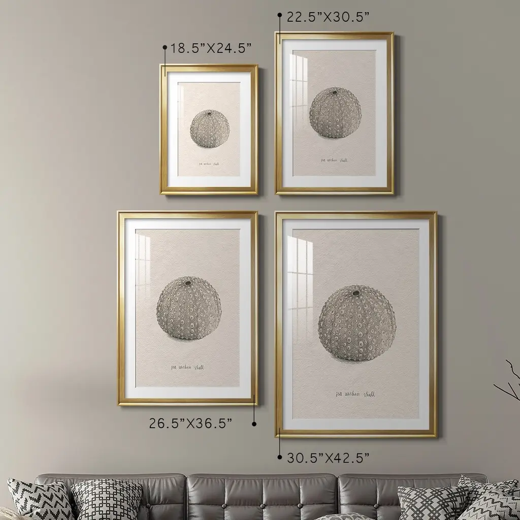 Shore Treasure Study I Premium Framed Print - Ready to Hang A Premium Framed Print created to last. Framed in distressed wood and available in an array of sizes and colors Featuring a beveled a solid wood stretcher bar, each piece comes ready to hand 4 SIZES AVAILABLE 30.5''X42.5'' - Overall Size 26.5'X36.5'' - Overall Size 22.5''x30.5'' - Overall Size 18.5''x24.5'' - Overall Size Each piece is made to order. Each piece comes with hanging hardware. Made in the USA Ready to Hang Giclee Paper Print Acrylic Glass Beveled Matt Board