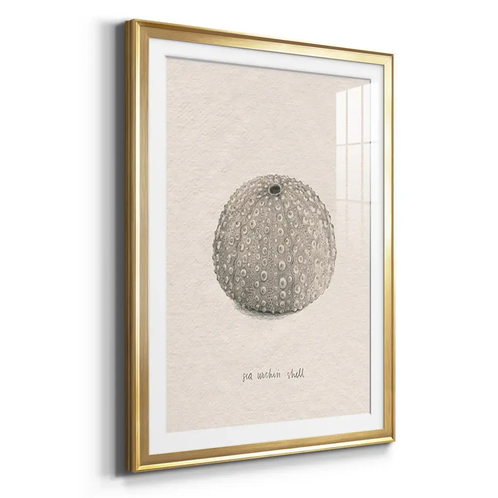Shore Treasure Study I Premium Framed Print - Ready to Hang A Premium Framed Print created to last. Framed in distressed wood and available in an array of sizes and colors Featuring a beveled a solid wood stretcher bar, each piece comes ready to hand 4 SIZES AVAILABLE 30.5''X42.5'' - Overall Size 26.5'X36.5'' - Overall Size 22.5''x30.5'' - Overall Size 18.5''x24.5'' - Overall Size Each piece is made to order. Each piece comes with hanging hardware. Made in the USA Ready to Hang Giclee Paper Print Acrylic Glass Beveled Matt Board