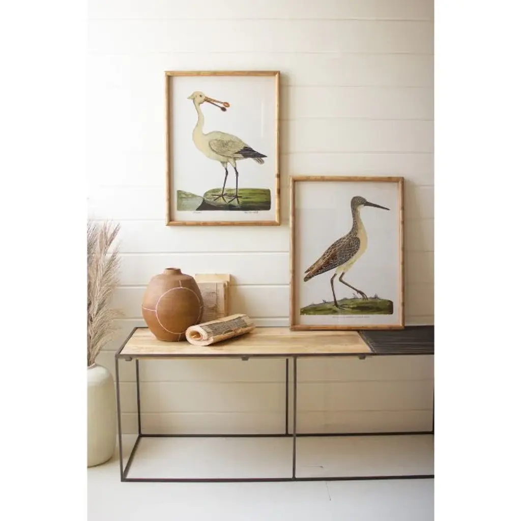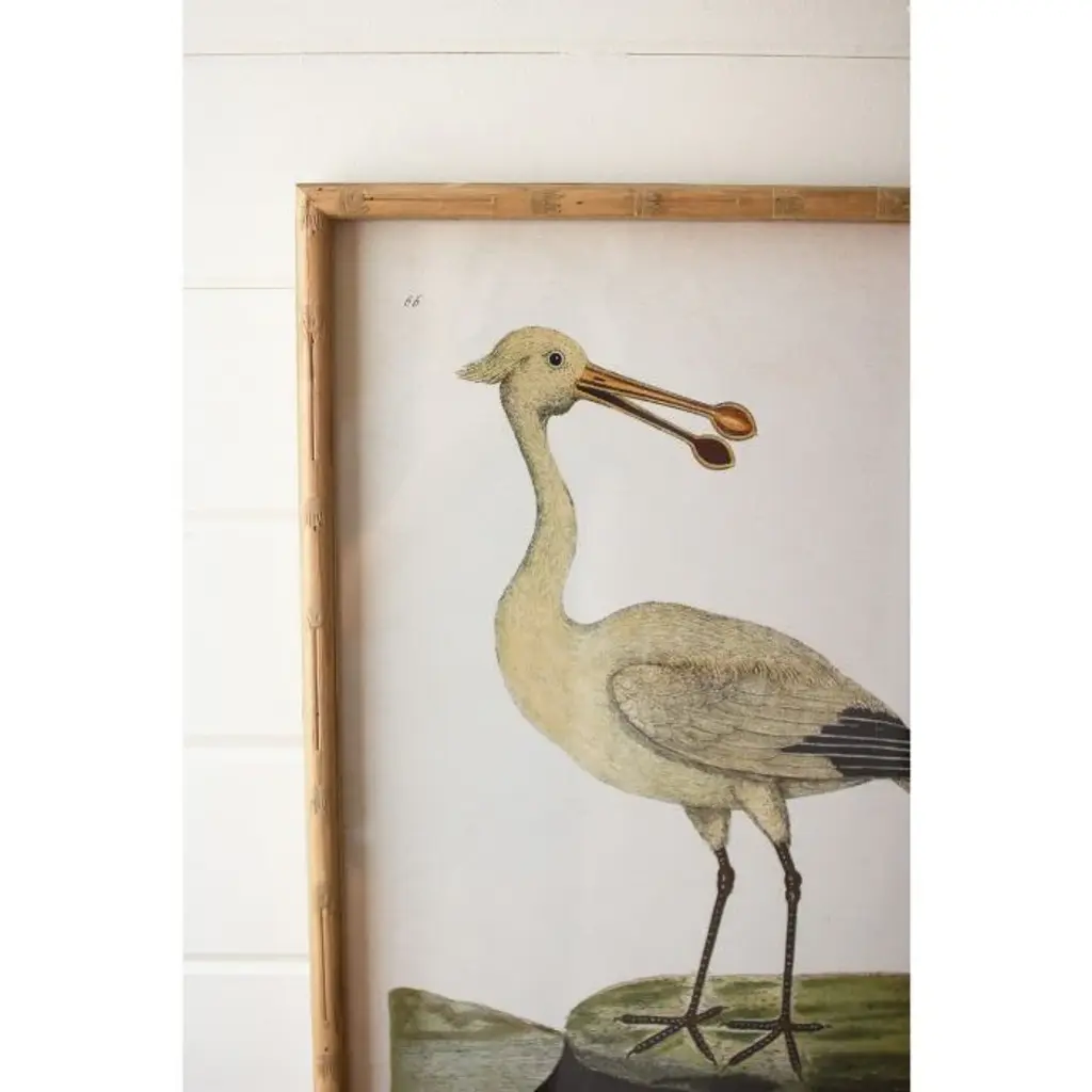 Coastal inspiration is delicately featured with a set of 2 bamboo framed shore birds wall art. A neutral palette evokes a calm expression.