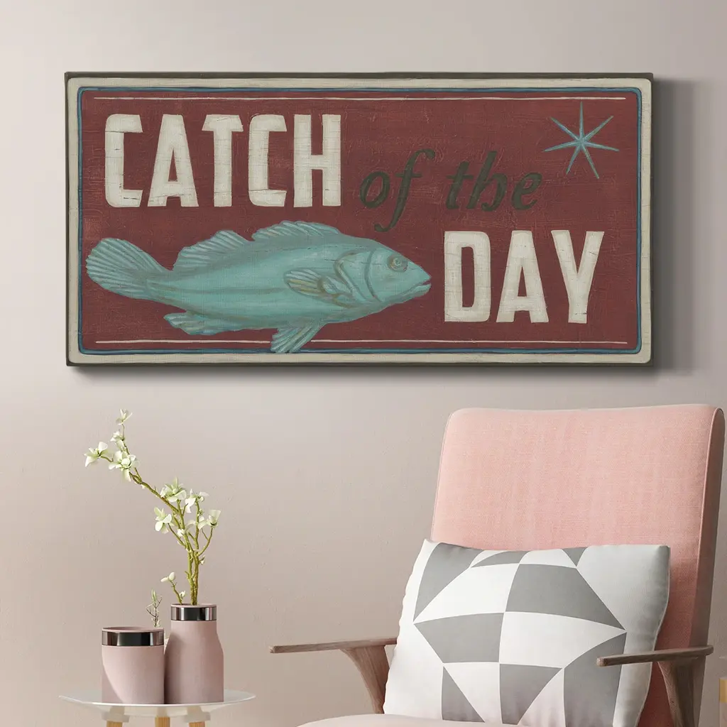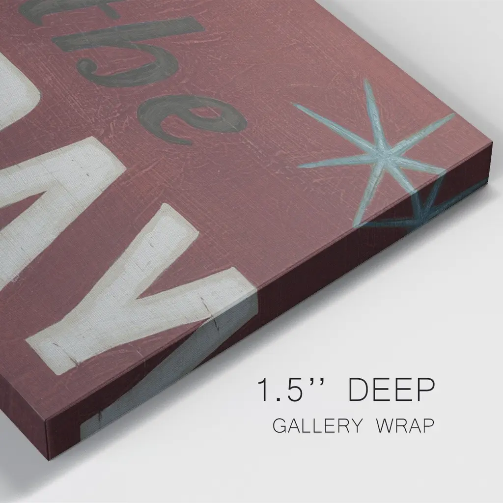 Shoreline Signs IV- Premium Gallery Wrapped Canvas - Ready to Hang A premium hand stretched gallery wrapped canvas print created to last. Featuring a beveled a solid wood stretcher bar, each piece comes ready to hand 3 SIZES AVAILABLE 8''X16'' - Overall Size 12"X24'' - Overall Size 20''x40'' - Overall Size Each piece is made to order. Built to Last Each piece comes ready to hang Solid wood stretcher Fade and Water resistant Made domestically