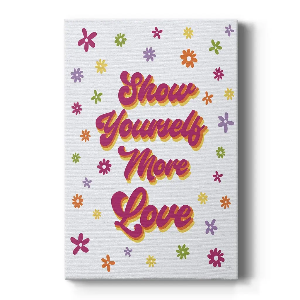 Show Yourself More Love Premium Gallery Wrapped Canvas - Ready to Hang A premium hand stretched gallery wrapped canvas print created to last. Featuring a beveled a solid wood stretcher bar, each piece comes ready to hand 6 SIZES AVAILABLE 8''X12'' - Overall Size 12''X18'' - Overall Size 18''X27'' - Overall Size 24''x36'' - Overall Size 32''x48'' - Overall Size 40''x60'' - Overall Size Each piece is made to order. Built to Last Each piece comes ready to hang Solid wood stretcher Fade and Water resistant Made domestically