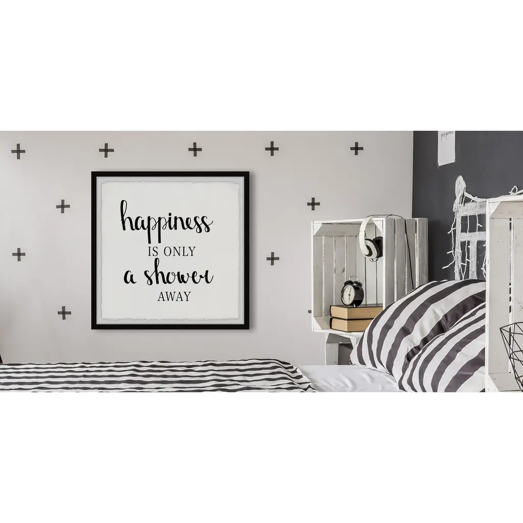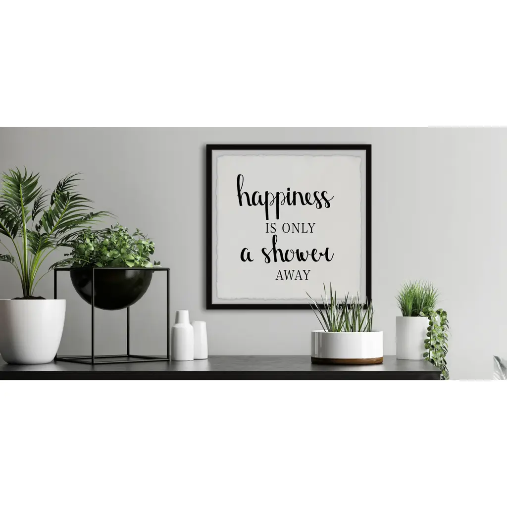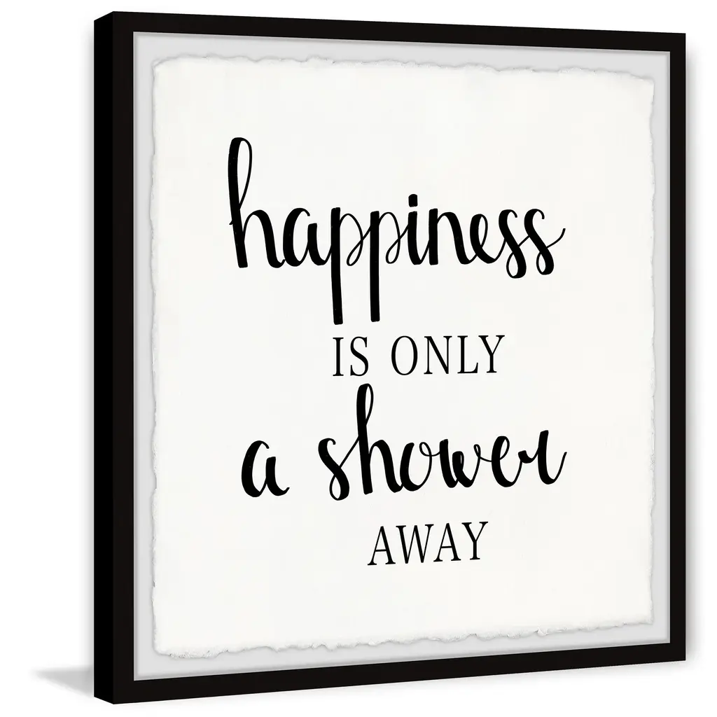 A nice hot shower is the perfect way to pick up any mood, and this frame shows that you know it. A cute little reminder to let the day wash away. Proudly printed in the USA, this piece is printed on high quality archive paper and professionally hand-framed. With wall-mounting hooks included, this artful accent is ready to hang up as soon as it reaches your front door.Top quality Giclee print on high resolution Archive PaperHand cut deckled edgesHigh quality durable non-warping frameFinished under high optical clarity, shatter resistant plexiglassArrives ready to hangIncludes a certificate of authenticityPrinted in the USA