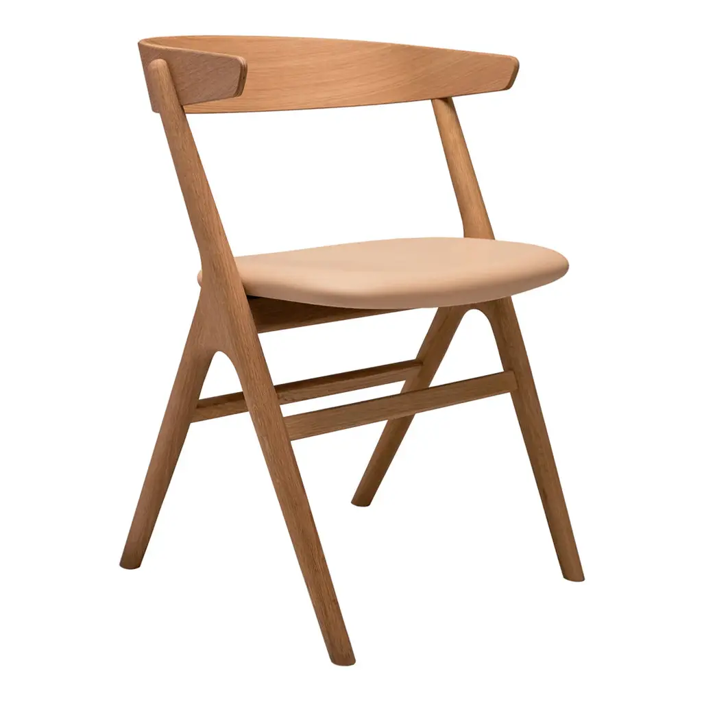 Sibast No 9 is a light dining chair with an unfailing sense of style, closely related to the slightly larger, more complex Sibast No 7 and Sibast No 8. The interconnectedness with Sibast No 8 is particularly obvious: both are distinguished by a Y-shaped frame, a distinctive, trendsetting element which, in addition to its visual value, serves to strengthen the chair. In Sibast No 9, however, the Y is inverted and its predecessor's graphically powerful back with bars is replaced by a single curved top rail and armrest. This simple, light, functional chair with its fine artisanal subtleties has been out of production for more than five decades but is now joining the collection at Sibast Furniture, adding yet another chapter to the story of a furniture designer who tirelessly strived for a genuine, refined style and, in his efforts to create the best chair every time, worked through mounds of sketches and fine-tuned both craftsmanship and style to perfection.