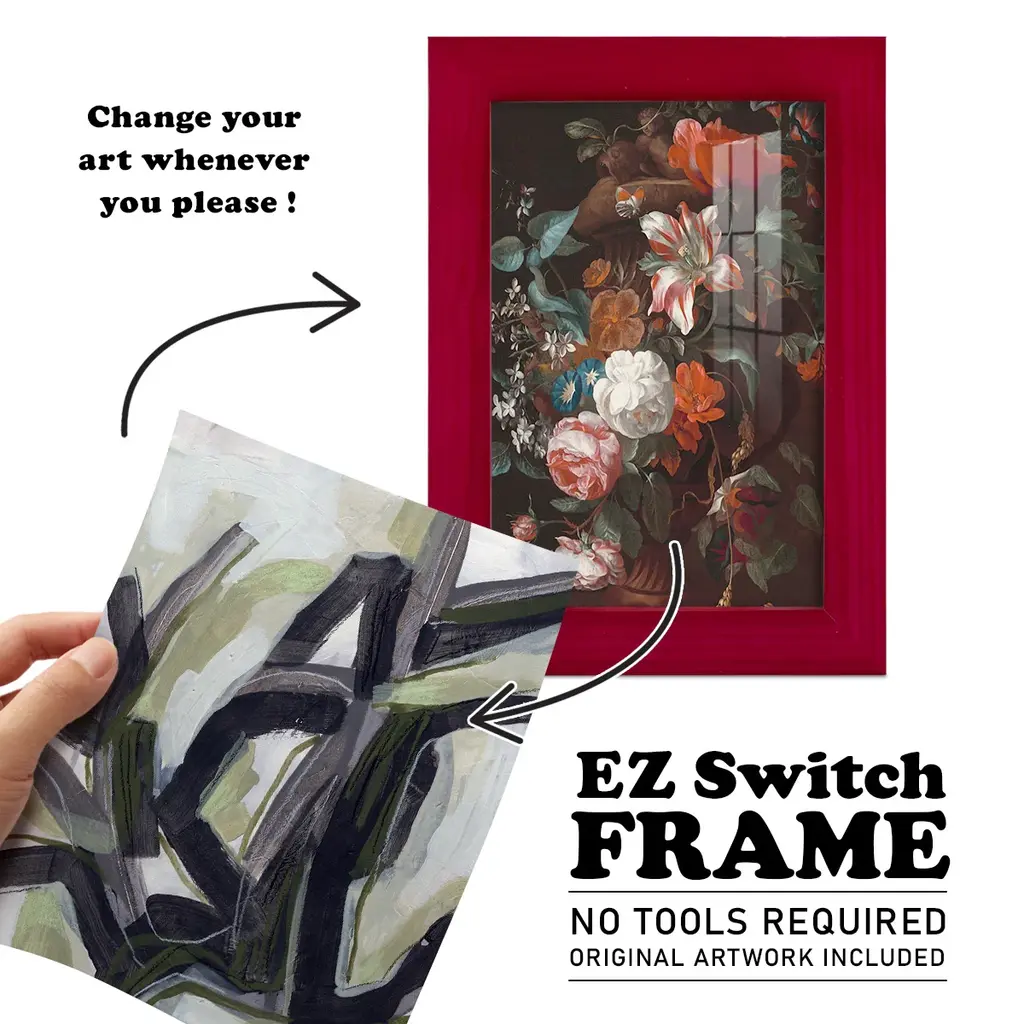 Signal Flare I -EZ SWITCH Framed Print w/glass-Cherry Red A delightful, framed print. Featuring a solid wood frame with real wood glass. This premium print is giclee quality. In addition, every frame features a removable back and table top stand. This allows you to change your art in the future or to just stand the art on a table for a new look. We are sure you'll enjoy our new series of EZ SWITCH Framed Art. Solid Wood Frame Real Glass Removable / Replaceable Art Built in Tabletop Stand Sizes range from 4x6 up to 12x15 - buy just one or pair them up as sets as you see fit.