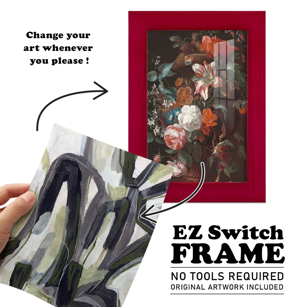 Signal Flare II -EZ SWITCH Framed Print w/glass-Cherry Red A delightful, framed print. Featuring a solid wood frame with real wood glass. This premium print is giclee quality. In addition, every frame features a removable back and table top stand. This allows you to change your art in the future or to just stand the art on a table for a new look. We are sure you'll enjoy our new series of EZ SWITCH Framed Art. Solid Wood Frame Real Glass Removable / Replaceable Art Built in Tabletop Stand Sizes range from 4x6 up to 12x15 - buy just one or pair them up as sets as you see fit.