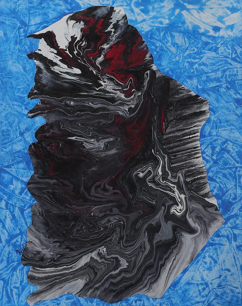 Abstract but real at the same time, Preeti Gupta's newest painting depicts a rich algae seabed through sinuous brushstrokes. The artist, from India, uses acrylic paints in a palette of red, black and white to create this sublime painting, whose captivating design exudes energies of mysticism and serenity.The artwork arrives signed and unstretched.