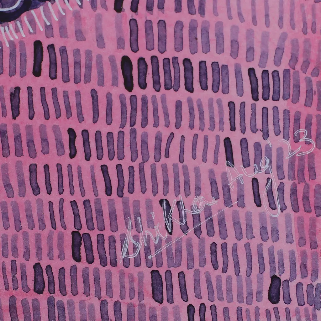 The essence of a focused soul is portrayed by India's Shikha Kaistha through vibrant colors and abstract details. With a talent to convey emotions through serene brushstrokes, the artist works with acrylic and watercolor on paper to create this captivating composition, whose intense pink hues invite you to focus on your spiritual and physical sides.The painting arrives signed and stretched.