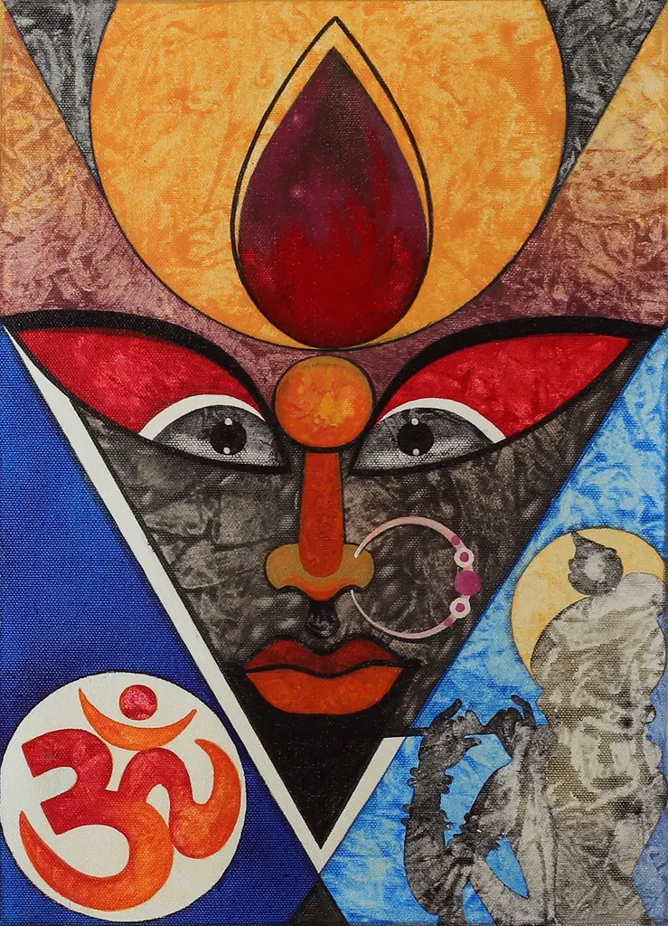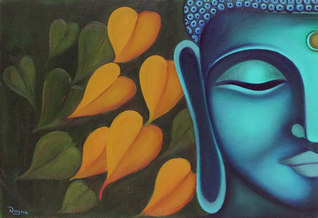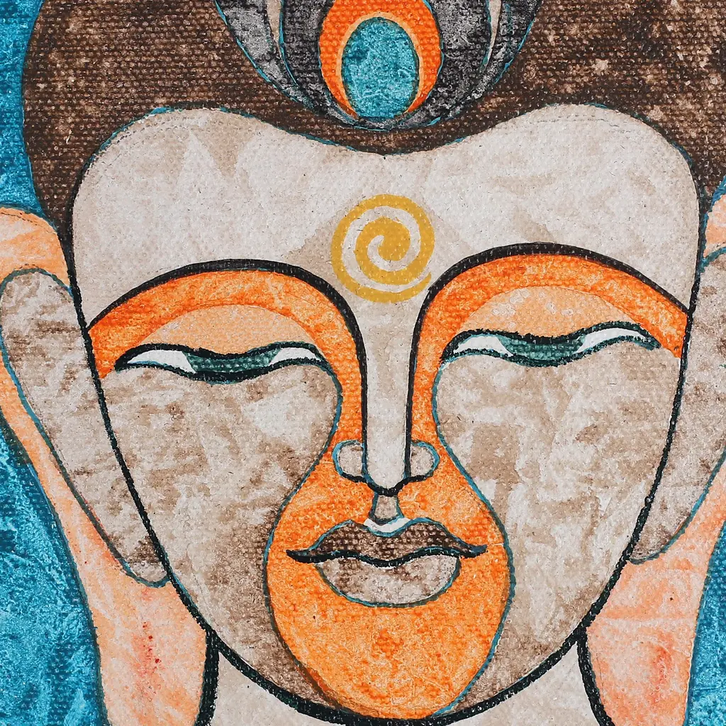 Signed Buddha-Themed Acrylic On Canvas Painting From India- Divine Harmony