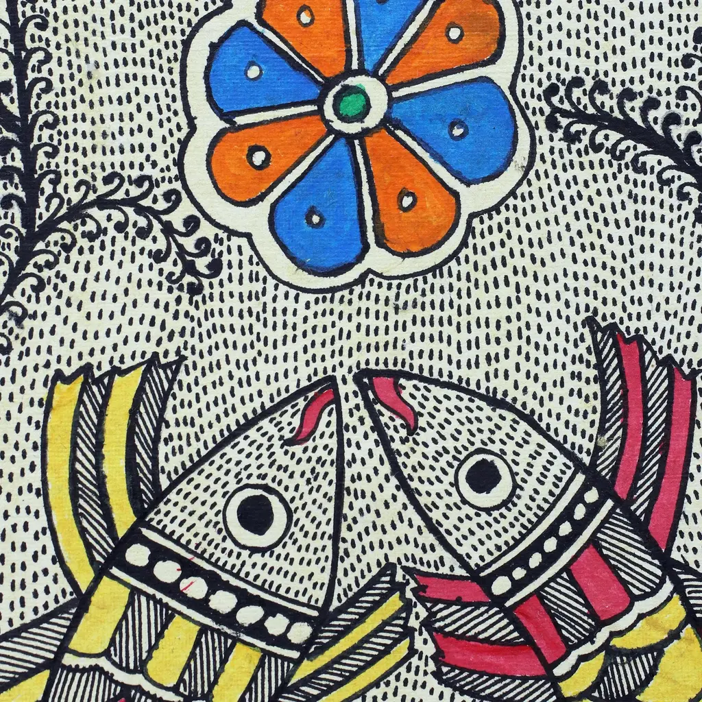 Signed Colorful Madhubani Fish Painting From India- Aquatic Bond I