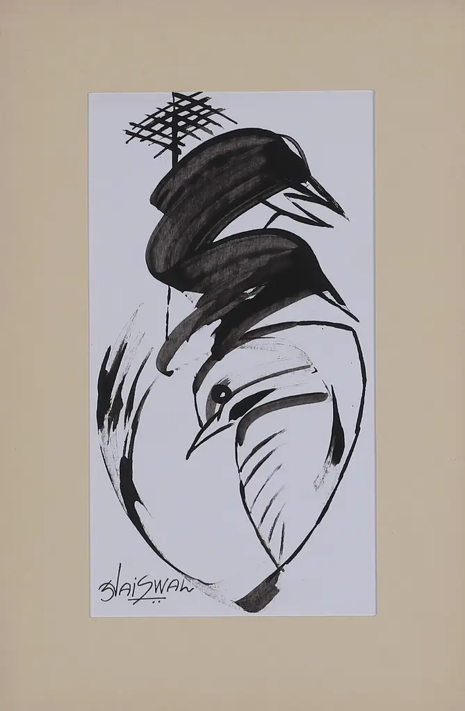 Signed Expressionist Blue-Toned Acrylic Painting From India- Thought Process Ii