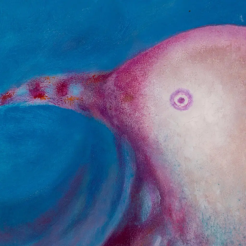 This enchanting expressionist composition awakens a myriad of sensations. Crafted by Peruvian artist Theus, the oil cool color scheme of blue tones allows this unique painting to create a magical illusion of two pigeons forming a deep and wavy sea.This charming artwork comes unstretched and signed by the artist, who titles his creation Exploradores del océano in Spanish.