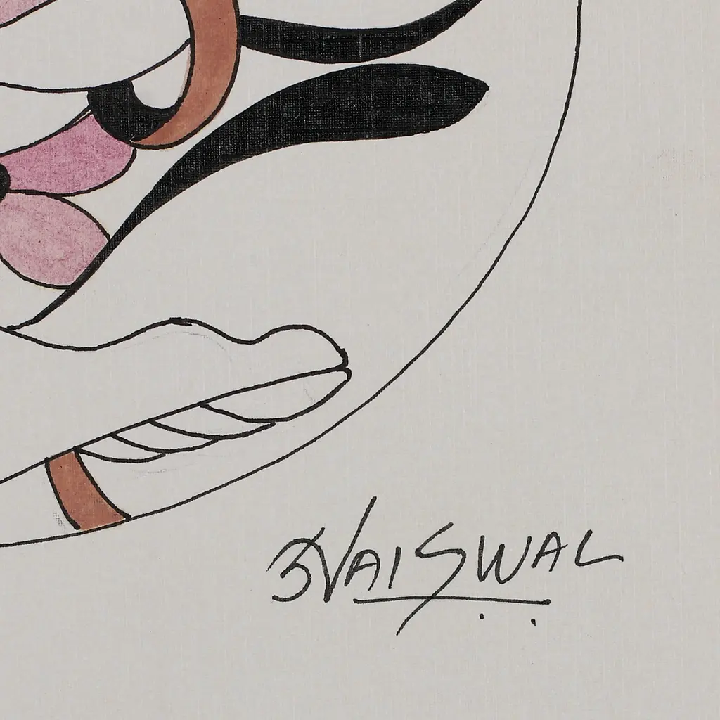 The spirit of Ganesha practices the daily prayers and meditations to the tune of the Om sound, uniting the energy of the universe. Artisan Sunil Jaiswal of India pays homage to the region's sacred doctrines with this impressionist painting made from acrylic and watercolors on paper. The artwork portrays Ganesha with a benevolent and magnificent attitude, inviting serenity to your spaces.The piece arrives signed and stretched.