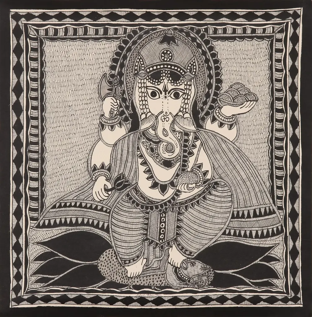 Signed Hindu Watercolor Ganesha And Hanuman Painting- Ganesha Hanuman