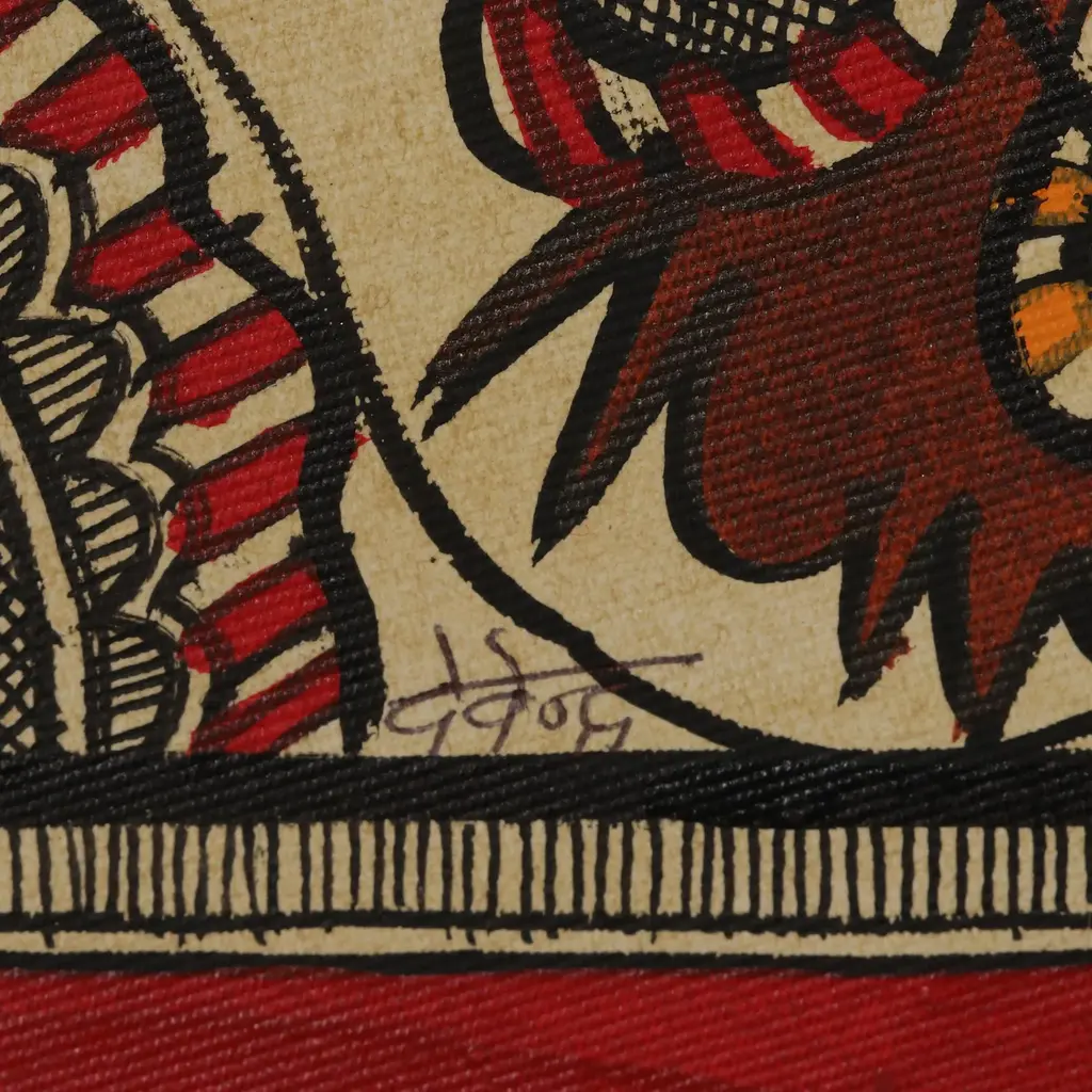 Signed Madhubani Ganesha Painting On Handmade Paper- Powerful Ganesha