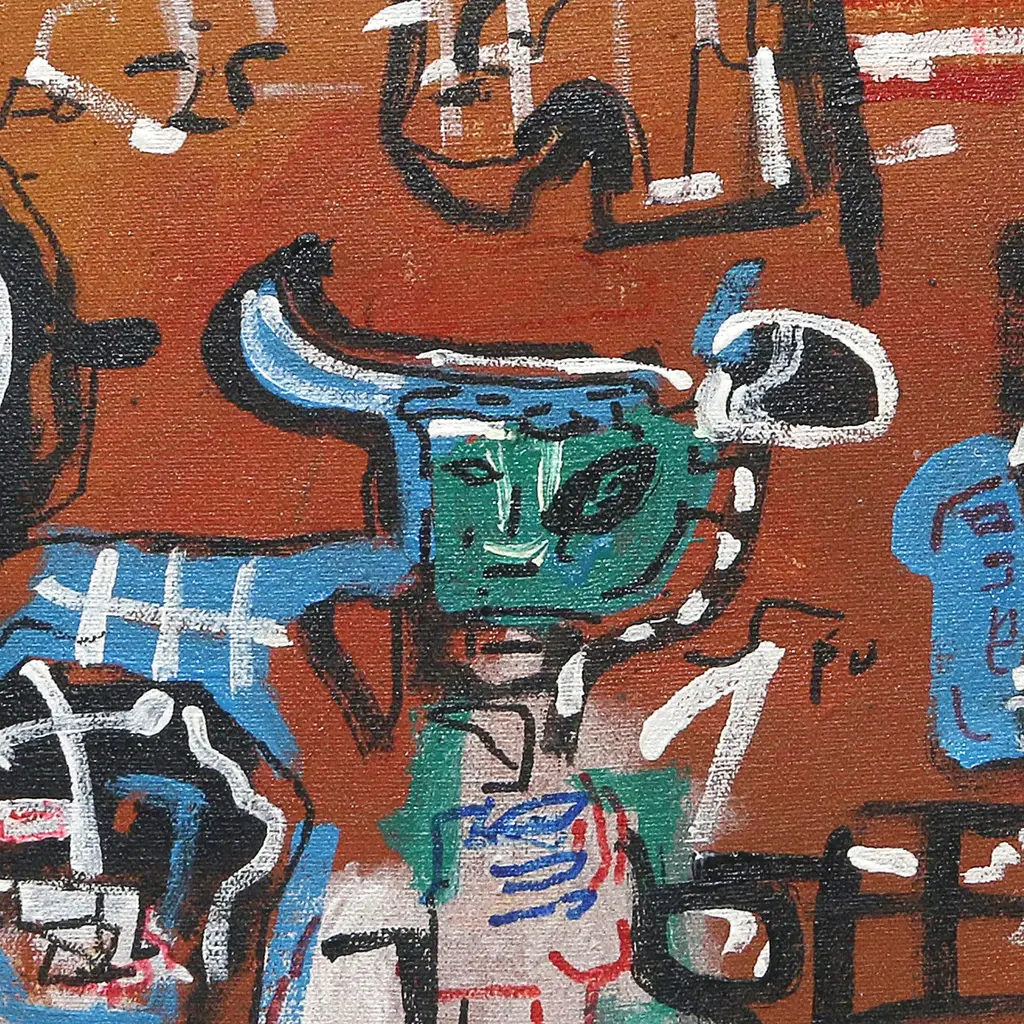 Painted as an ode to the better angels of human nature, Reza Dwakiss's mixed media work aspires toward the great heights of total transcendence. The Javanese artisan uses a modern, semi-abstract style to create the painting, working with bright acrylic and bold permanent marker.